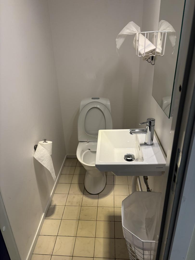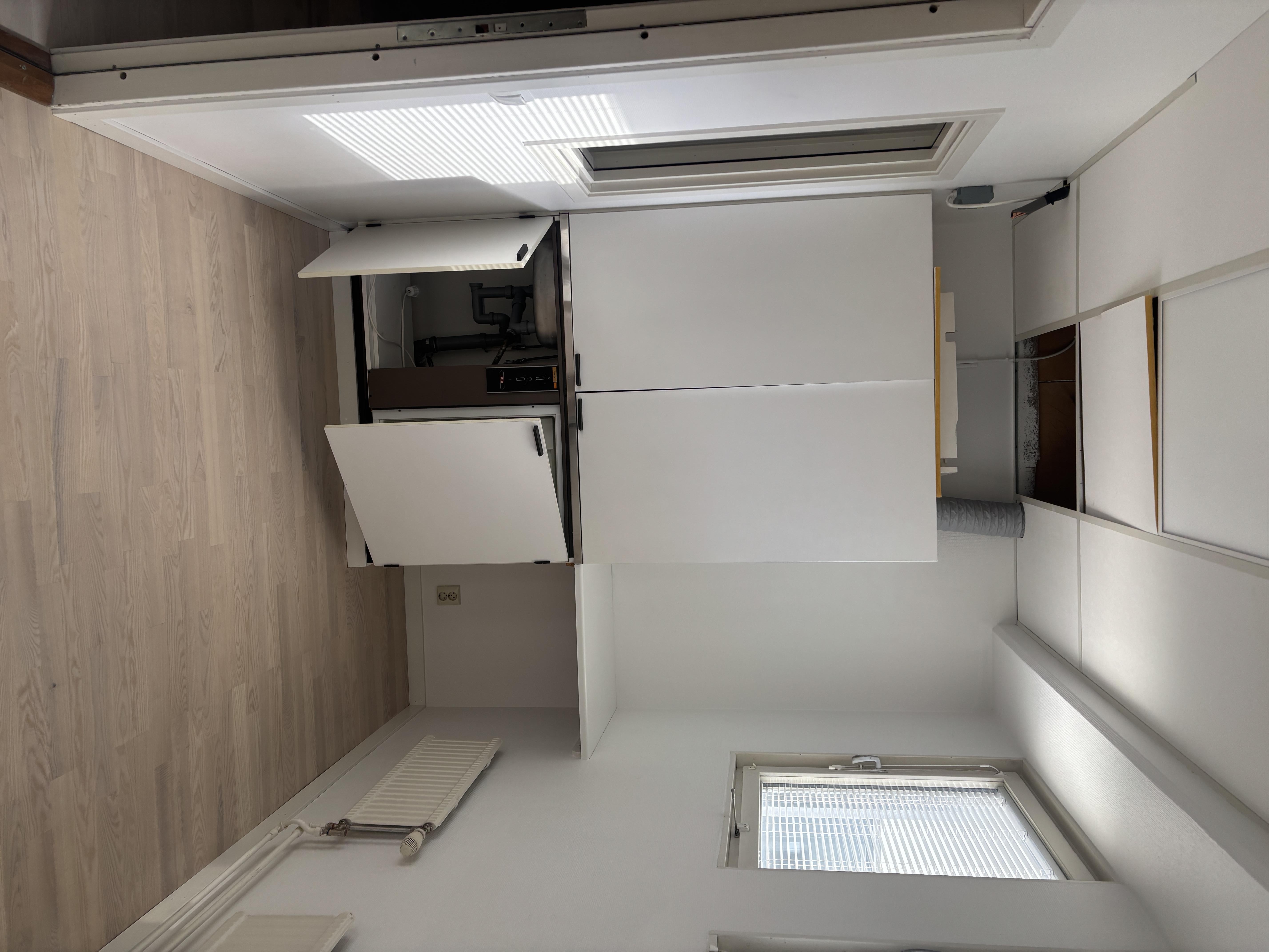 Öppen planlösning med separat pentry med kokvrå. Separat toalett och dusch.