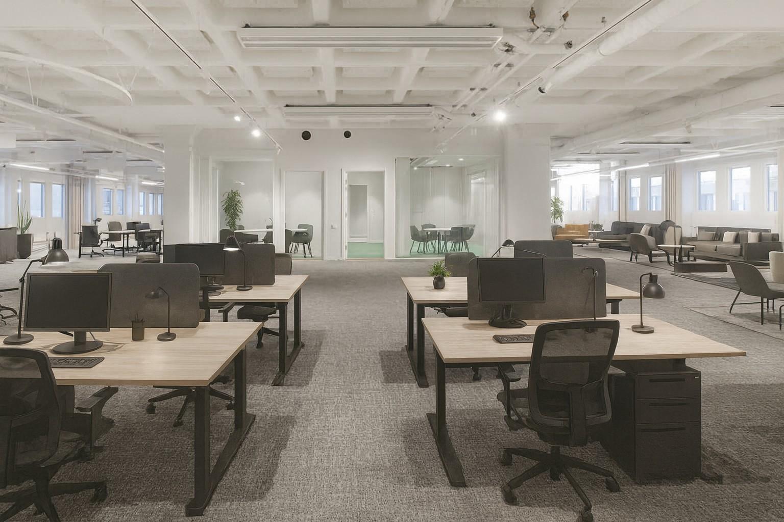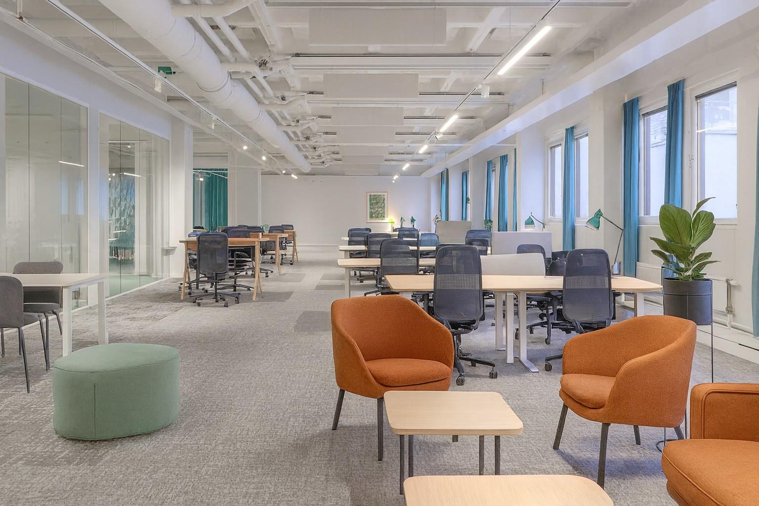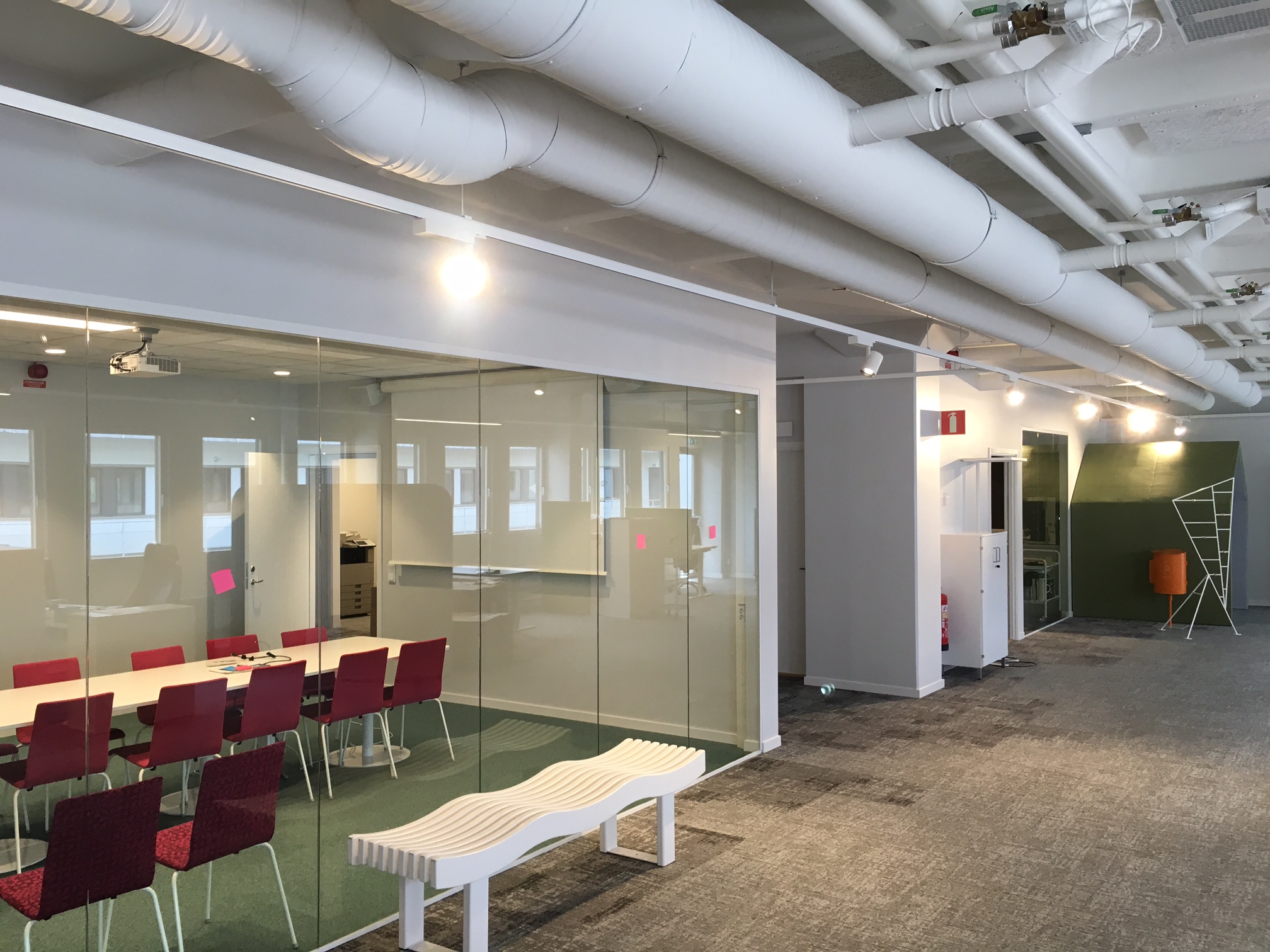 Planlösningen är öppen och lämpar sig mycket väl till bla showroom. Mötes/konferensrum i olika storlekar, frächt pentry och dusch.