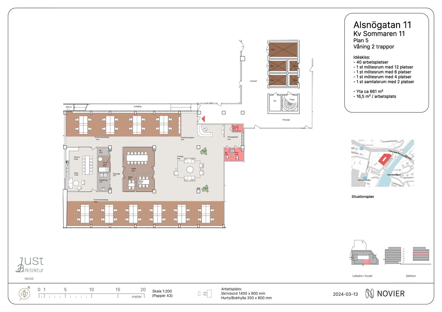 Går att hyra för 1 500 kr/plats/månad. Kvot: 1 plats per ca 150 kvm hyrd yta.