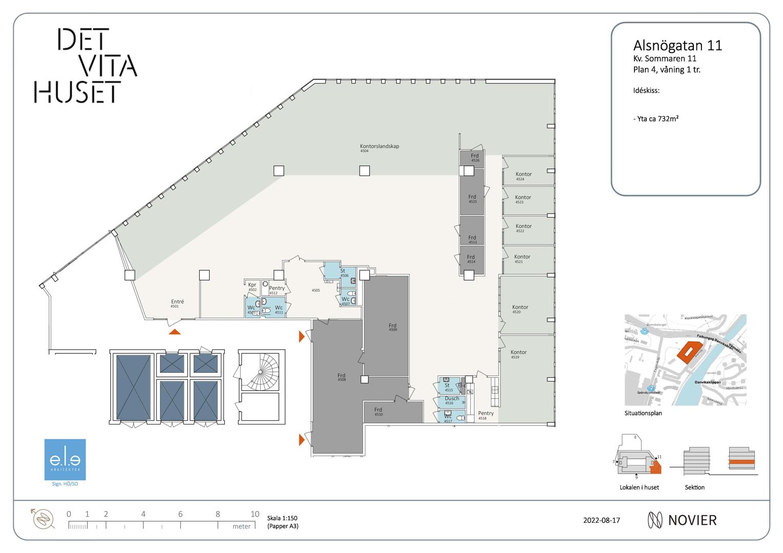 Lokalen lämpar sig bäst för öppen planlösning (se idéskiss). Ny hyresgäst kan vara med och påverka utformning och planlösning.