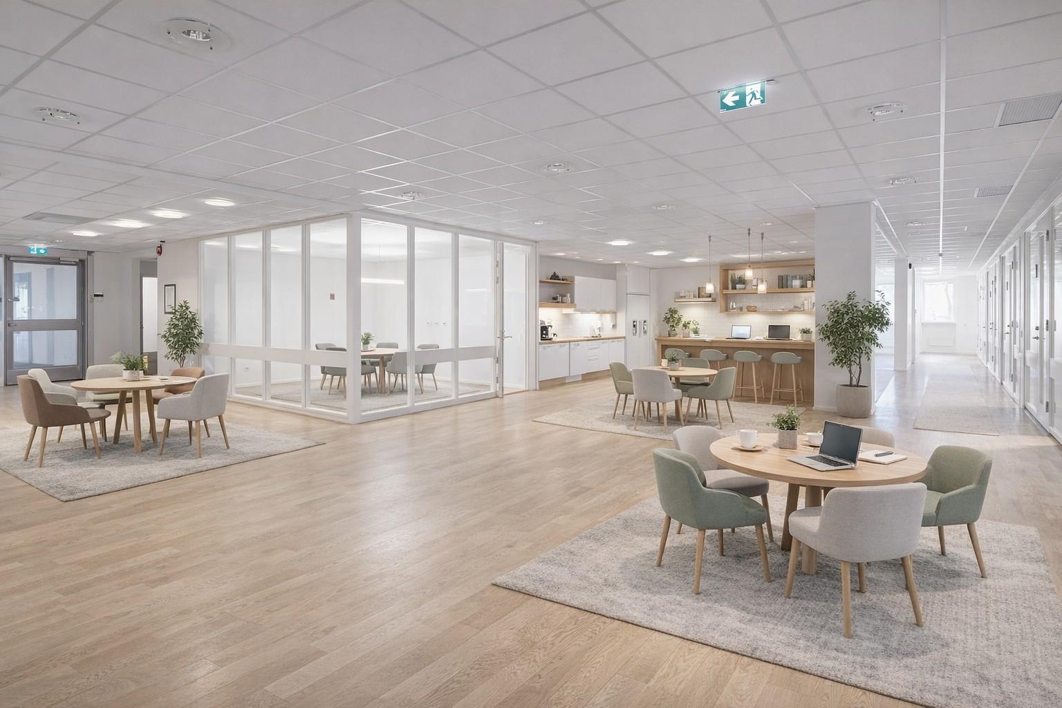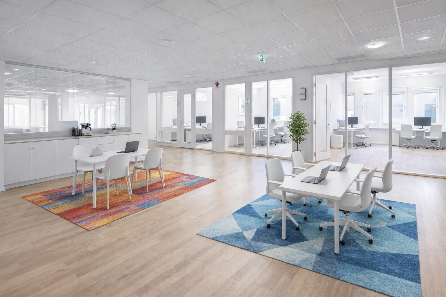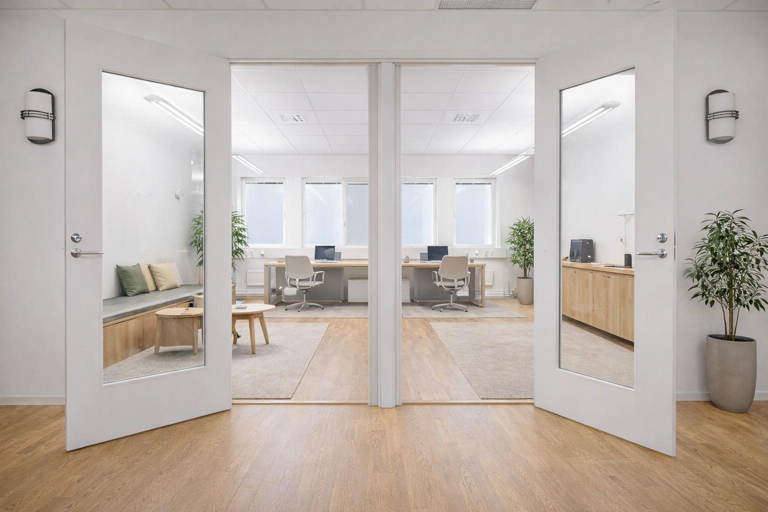 Ett effektivt kontor med genomgående stora kontorsrum och bra mötesmöjligheter.
