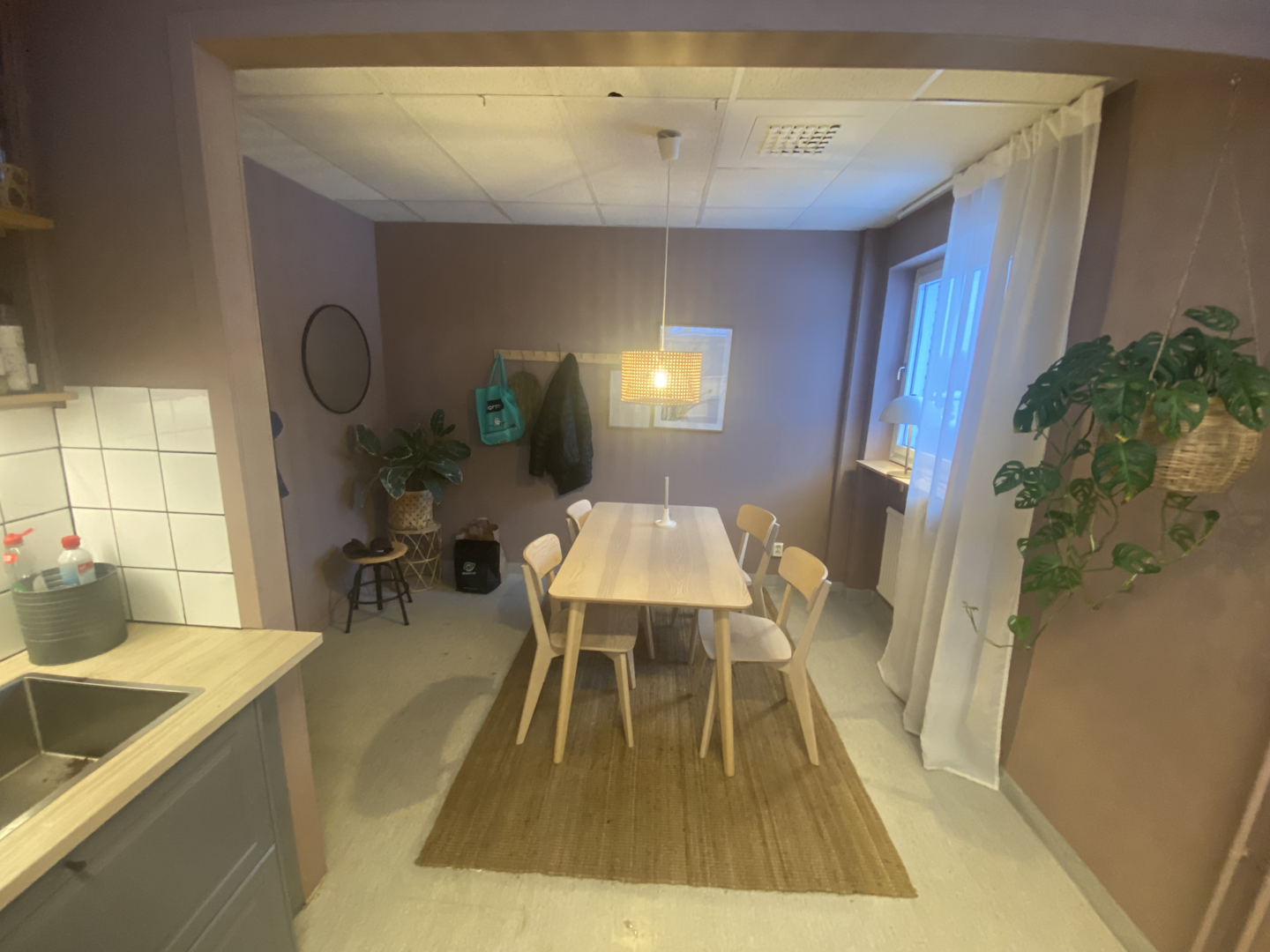 Se bifogad ritning. Fina personalutrymmen med egen ingång från baksidan av fastigheten.