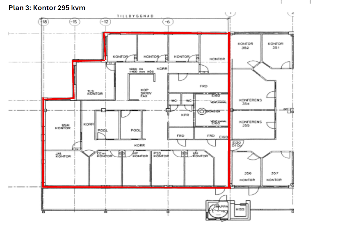 Rymliga kontorslokaler om 295 kvm med stora möjligheter att anpassa efter verksamhet och behov. Se ispirationsbilder i annonsen av ett renoverat hörnkontor i samma fastighet
