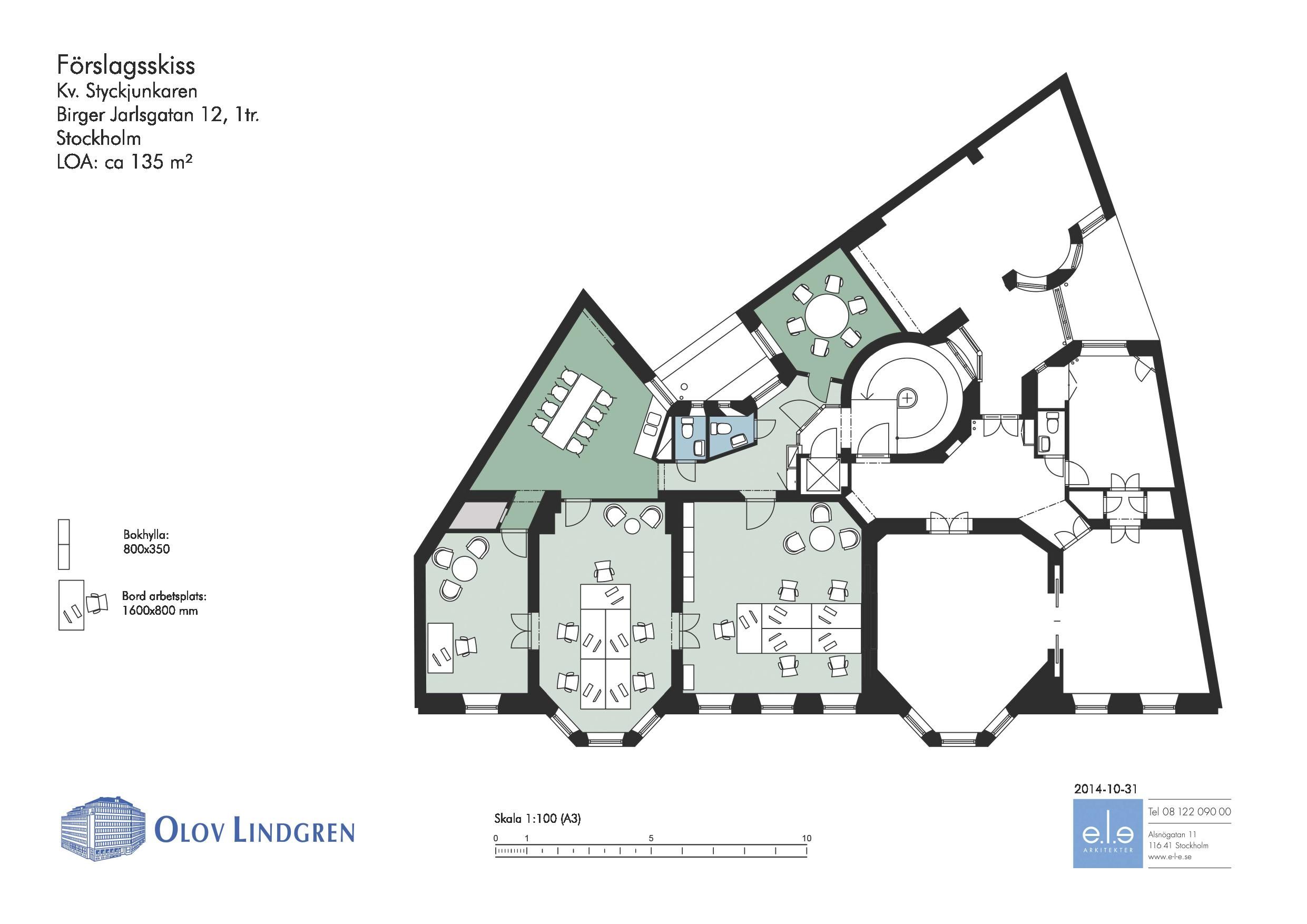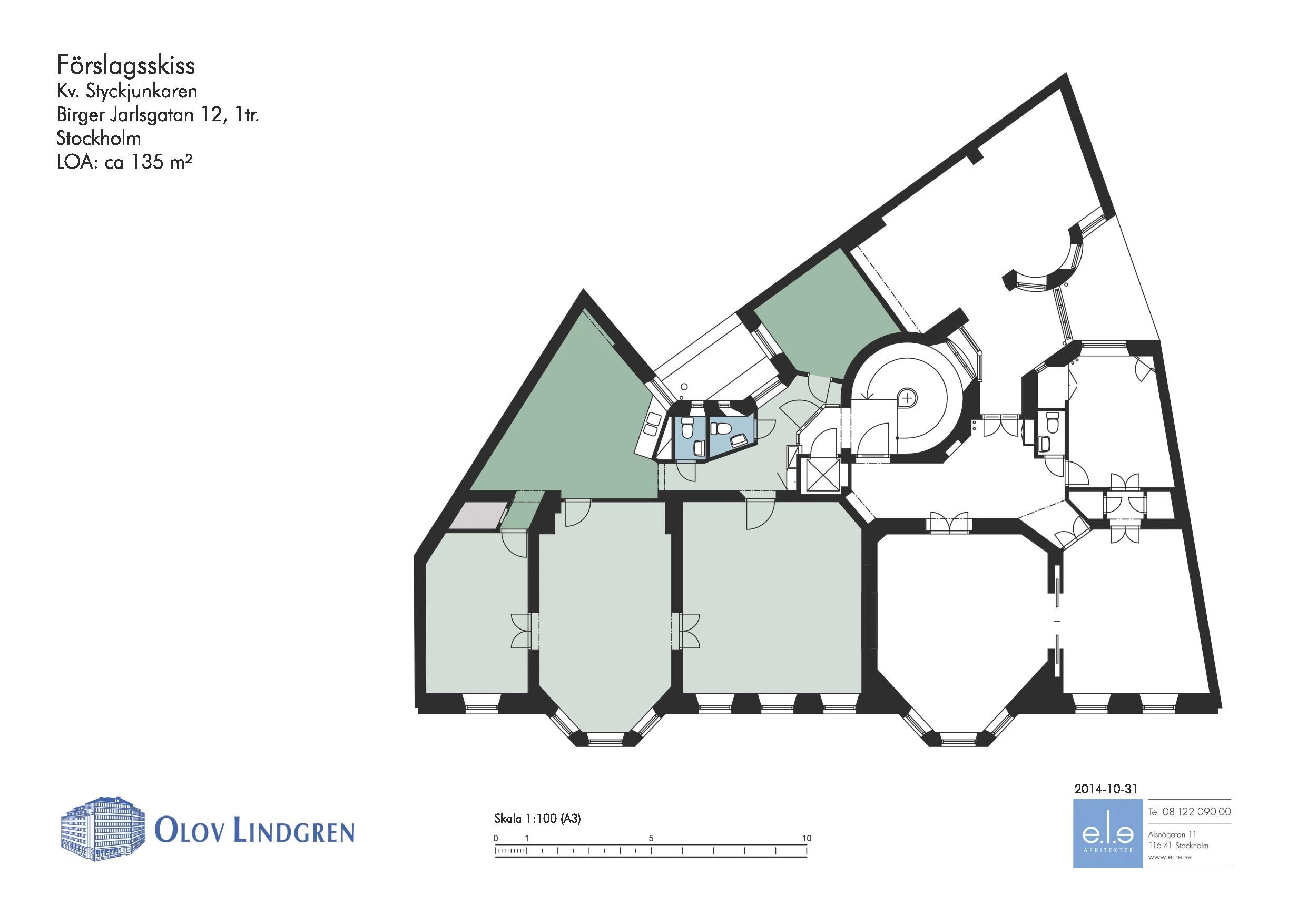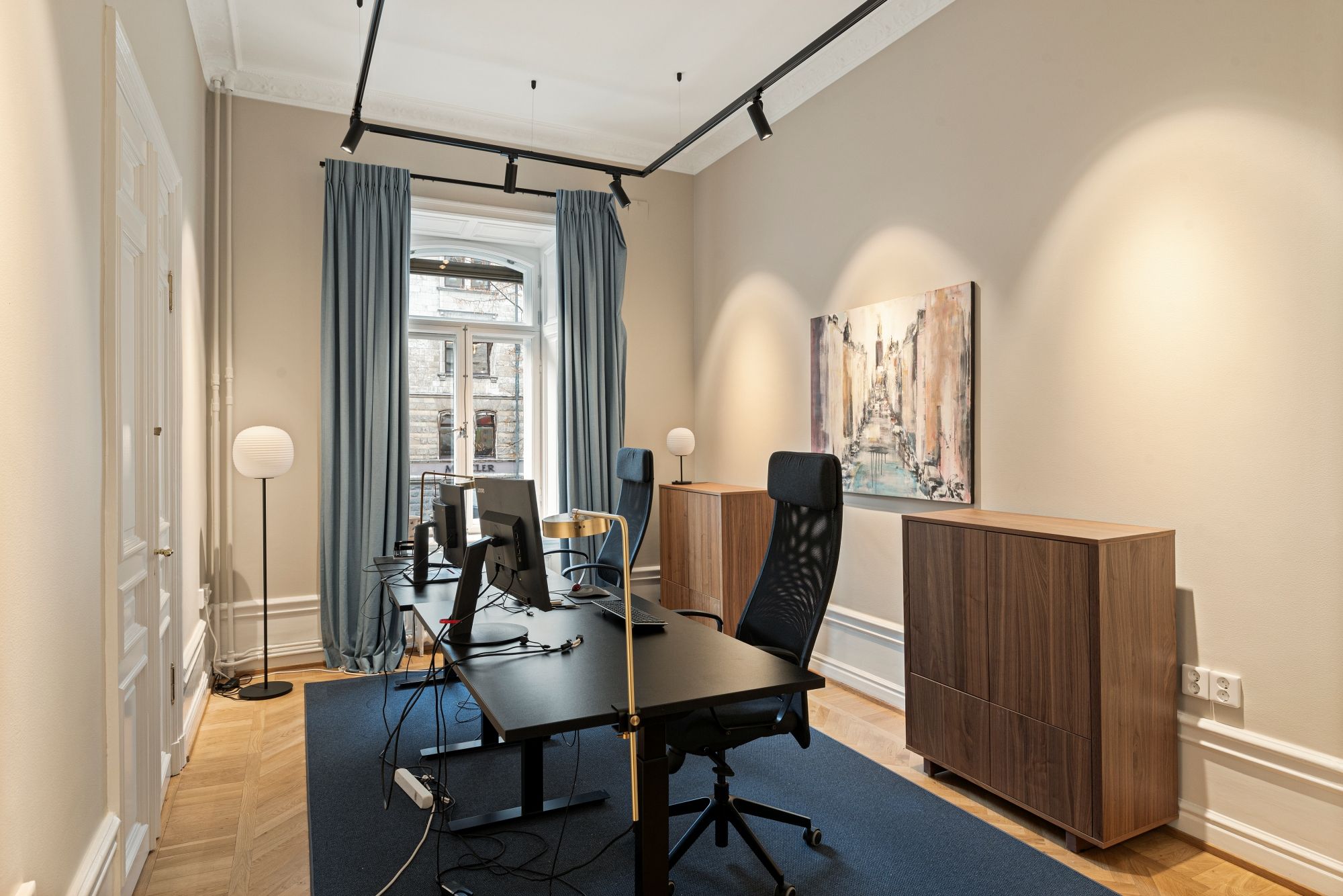 Trevligt kontor i en välhållen och representativ fastighet med fina originaldetaljer och genomgående gott skick. Lokalen har tre större rum i fil ut, med fönster ut mot Birger Jarlsgatan och ett bra ljusinsläpp. I lokalen finns även ett fräscht pentry med tillhörande matplats/loungedel samt 2 WC varav en med dusch.