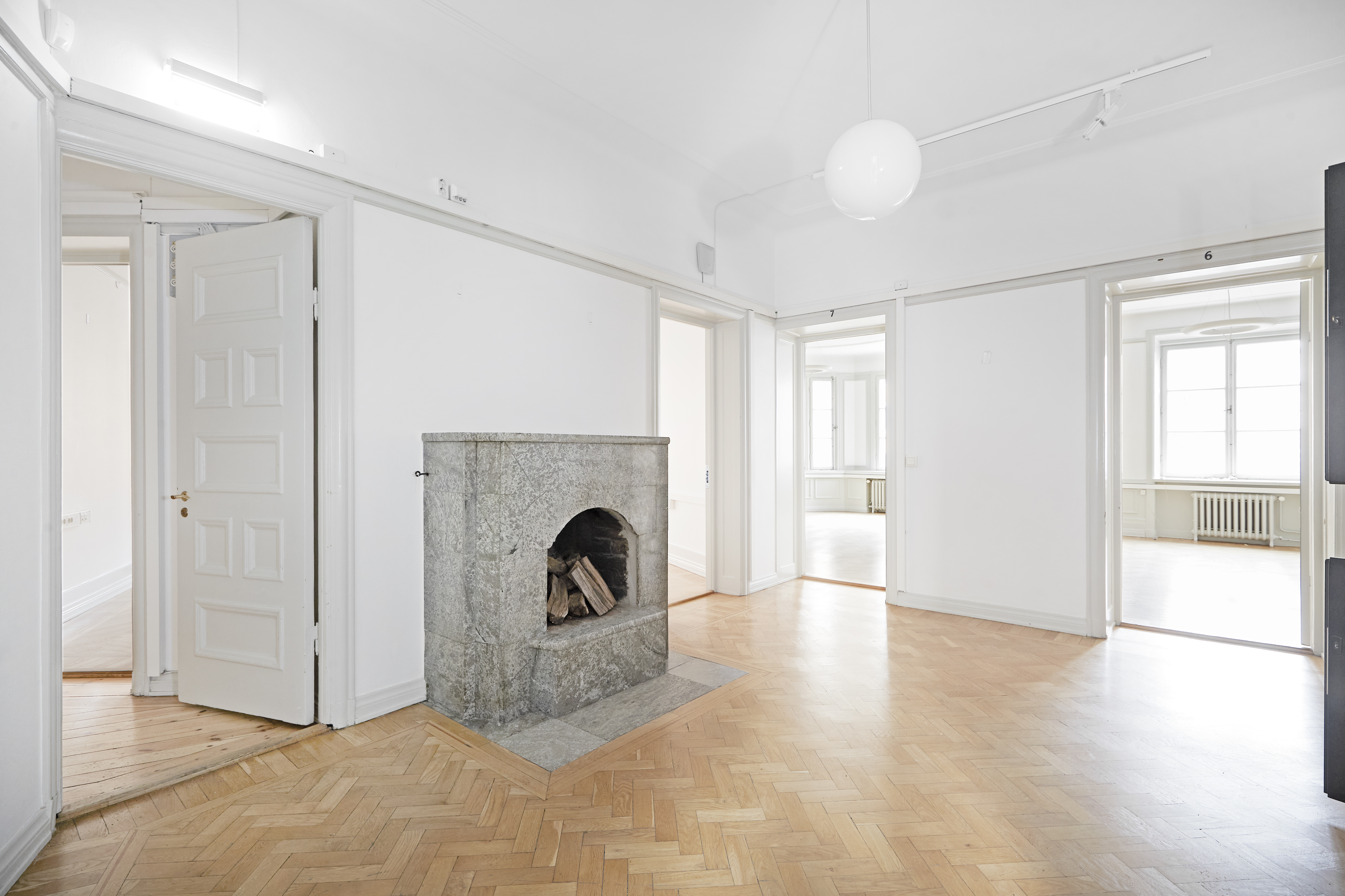 Vacker sekelskifteslokal på Birger Jarlsgatan vid Humlegården. Lokalen består idag av egna kontorsrum men kan enkelt öppnas upp för att skapa en öppen och ljus arbetsmiljö i landskap.