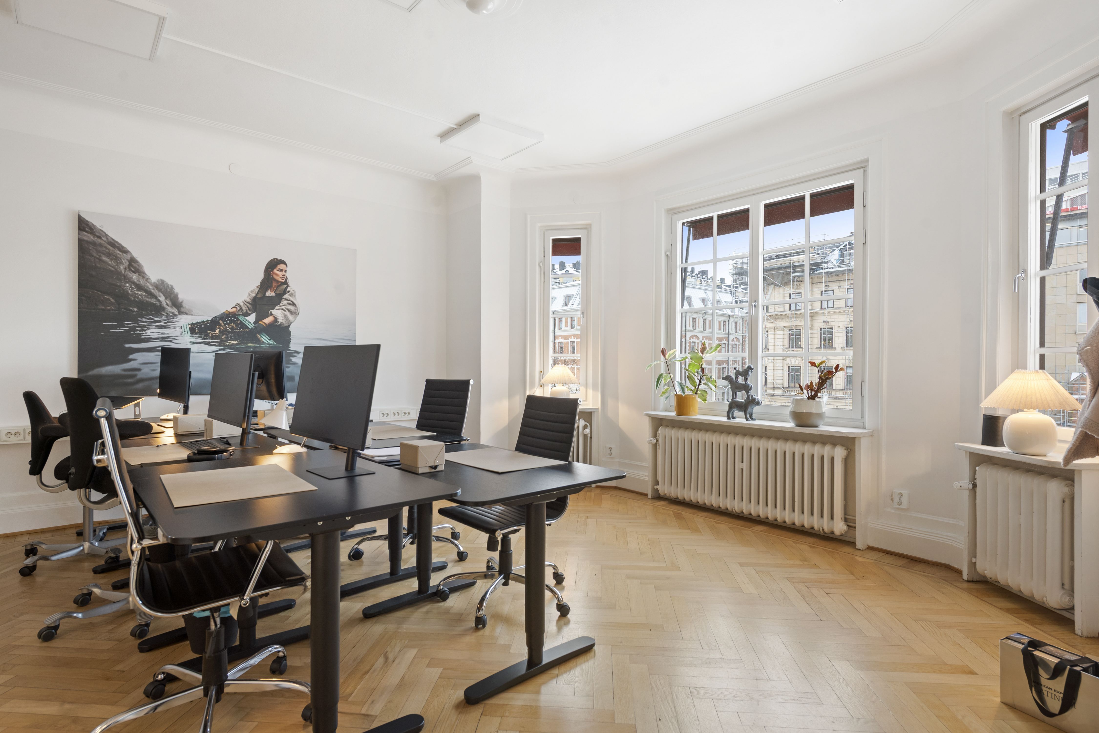 Lokalen ligger på våning 3 med hiss upp till lokalen. En trevlig fastighet med en genomgående representativ känsla.