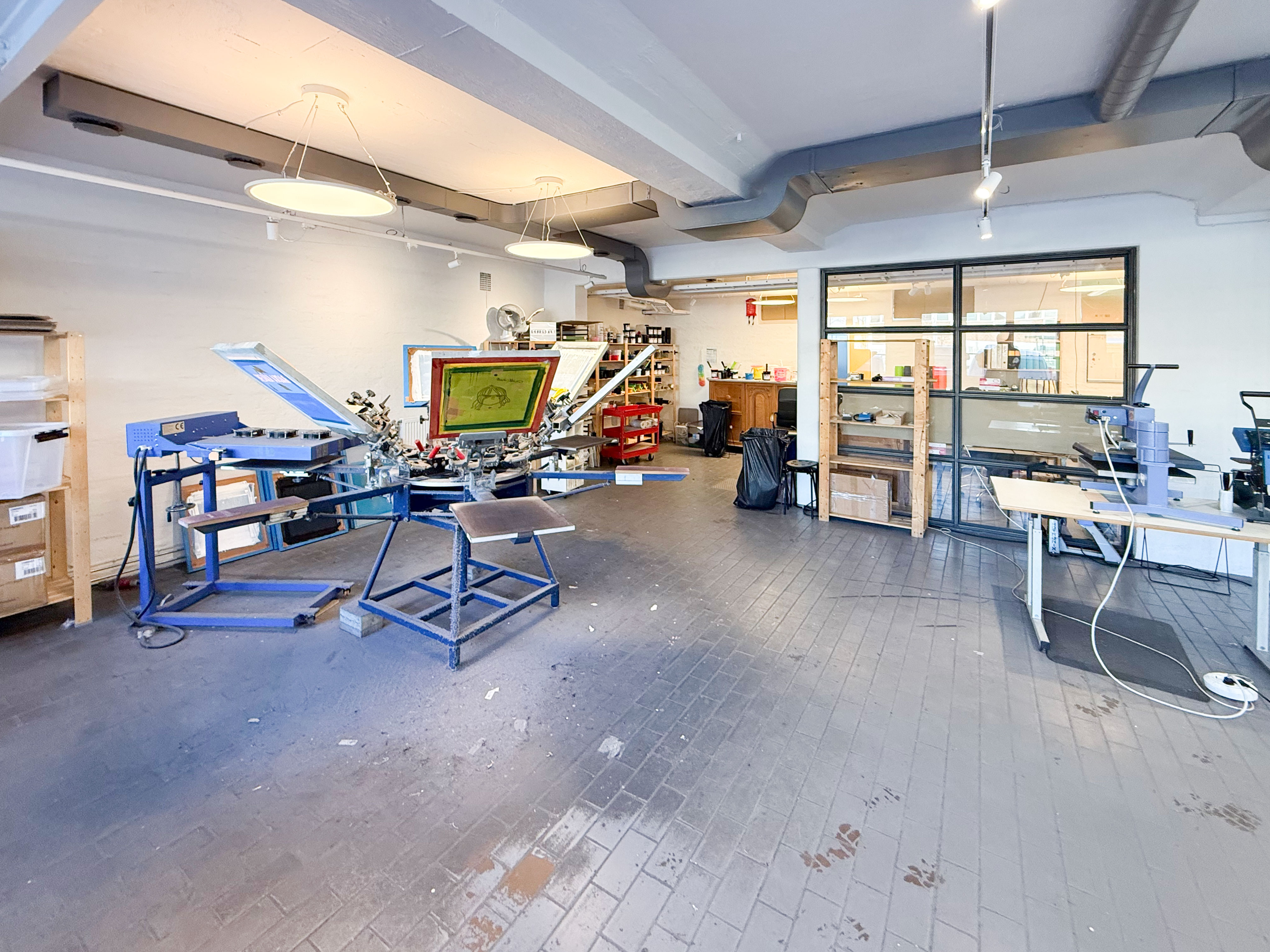 I den första byggnaden på Borrgatan, med mycket goda skyltlägen mot Frihamnsviadukten, finns denna funktionella produktions- och lagerlokal. Lokalen omfattar ca 270 kvm och disponeras med produktions- och lagerytor, mötesrum, stort pentry, två WC samt ytor för kontorsarbetsplatser. Det finns en bra port med möjlighet att ta in bil i lokalen, dock är bilverkstad ej tillåten.