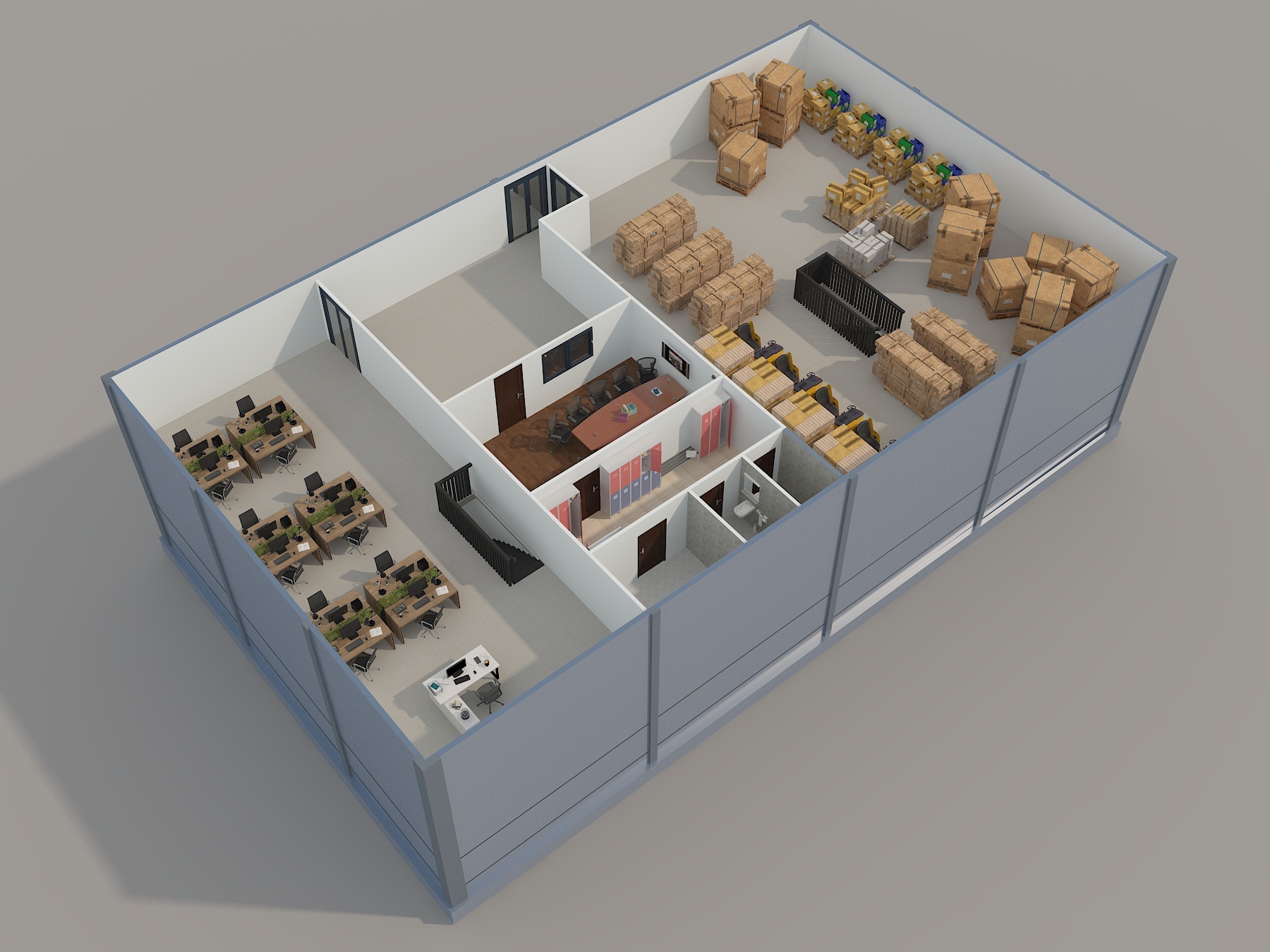 Denna industrilokal är fördelad på två rymliga våningar, erbjuder stor flexibilitet och kan anpassas efter hyresgästens specifika behov och verksamhetskrav. Lokalen kan hyras i sin helhet eller delas upp på två separata sektioner, vilket ger goda möjligheter för både mindre och större företag. Den är perfekt för verksamheter som behöver både lagerutrymme och kontorslokaler, eller för företag som vill ha en kombination av kontorsyta, personalutrymmen och logistikyta.