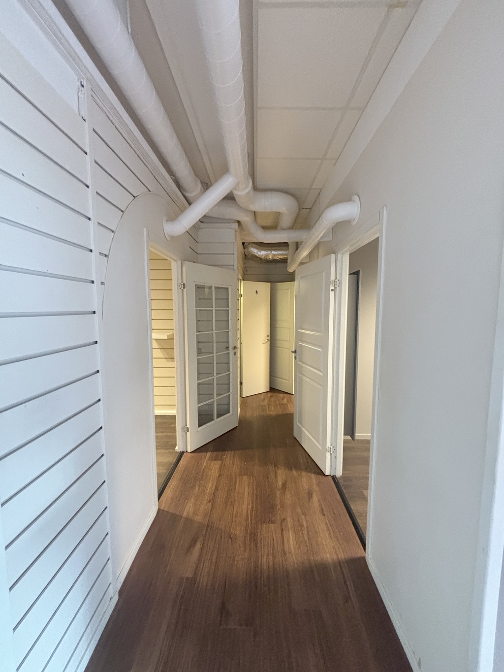 Planlösningen gör denna kontorsmiljö lämplig för mindre företag som söker en representativ och funktionell arbetsplats med möjlighet till flexibel rumsindelning. Vissa väggar kan tas bort för öppnare yta.
