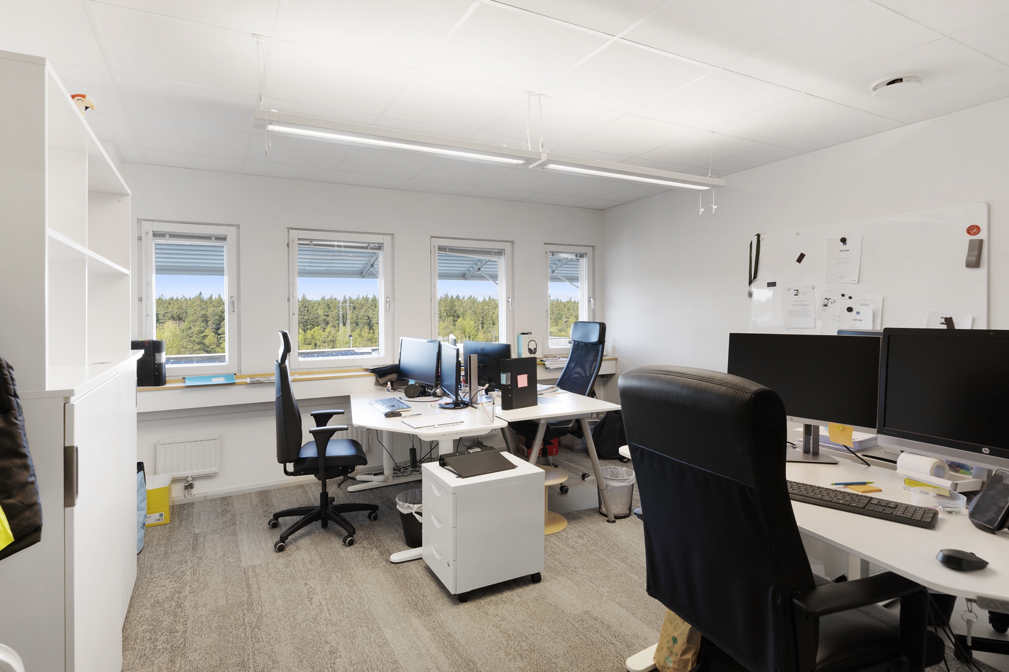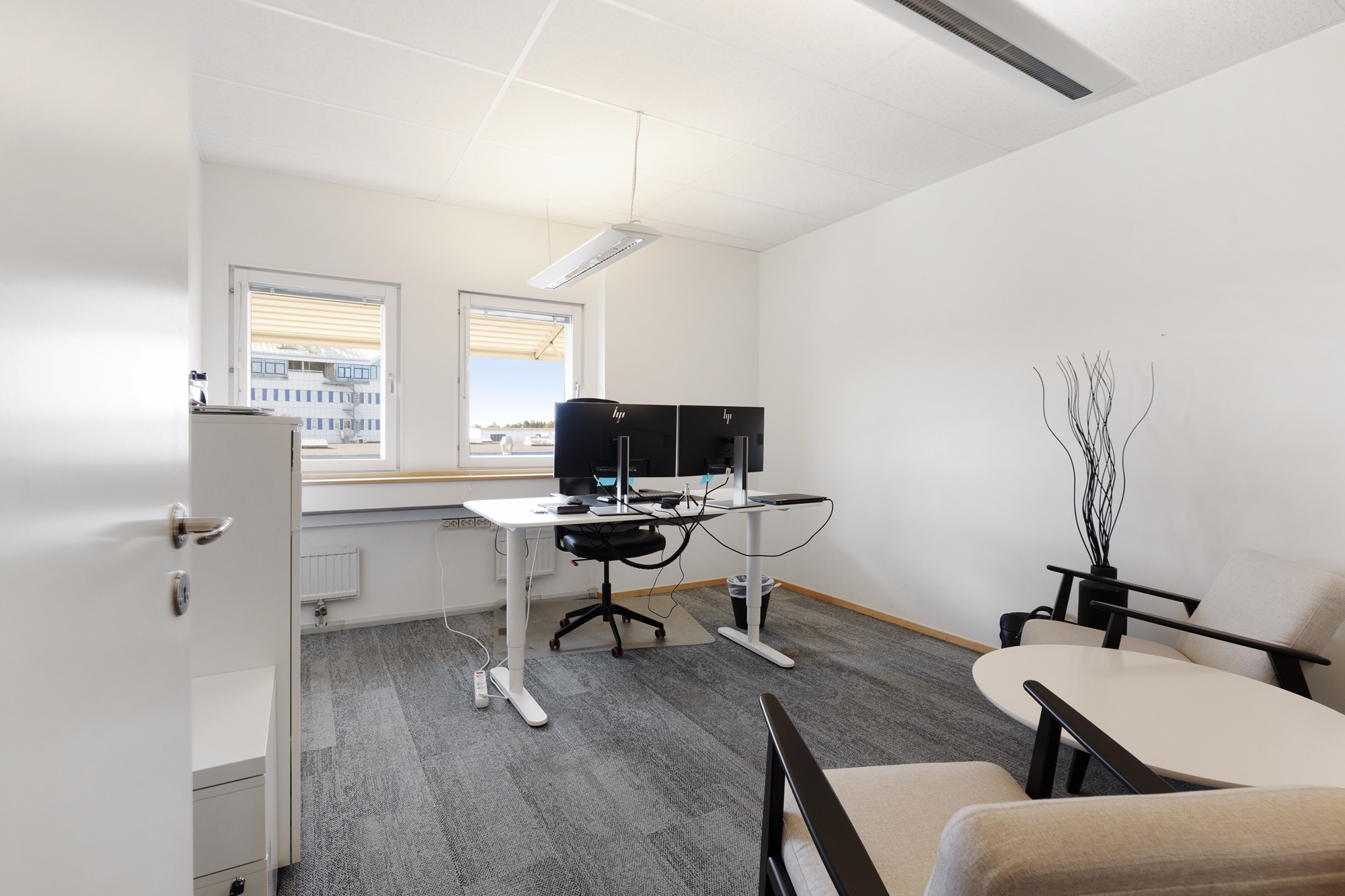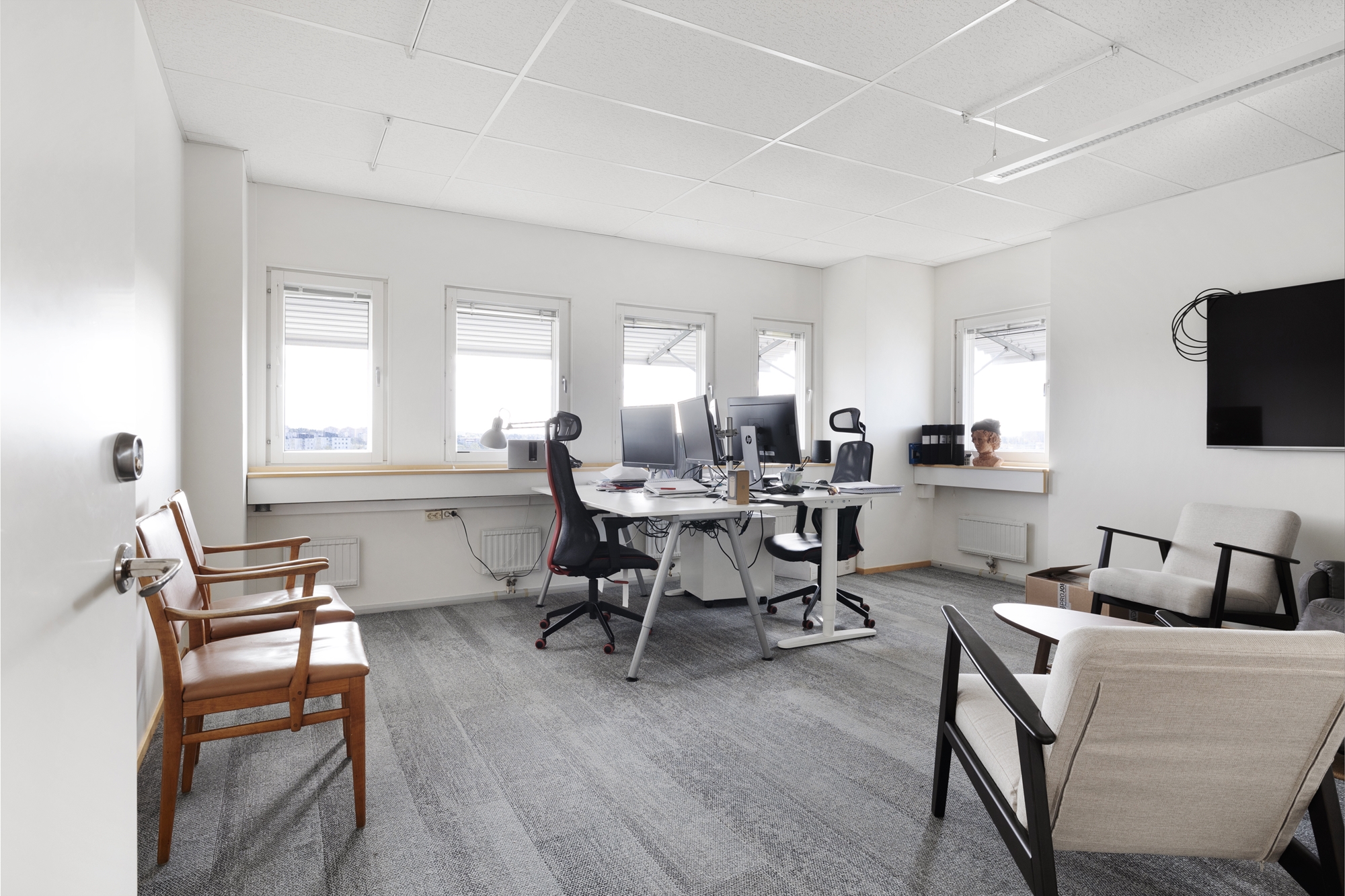 Lokalen har ett ljust och fritt läge med stora fönster som ger ett generöst ljusinsläpp och en trivsam arbetsmiljö.