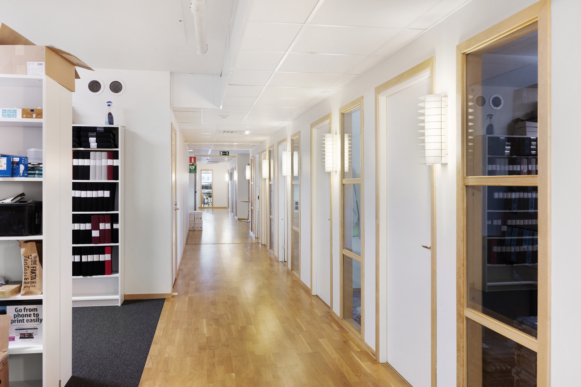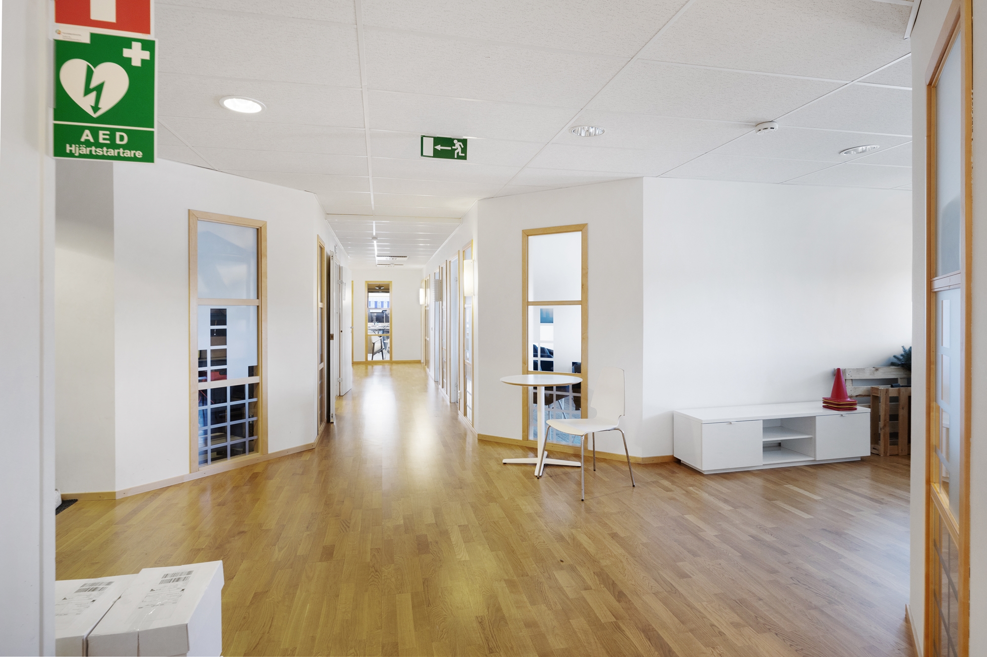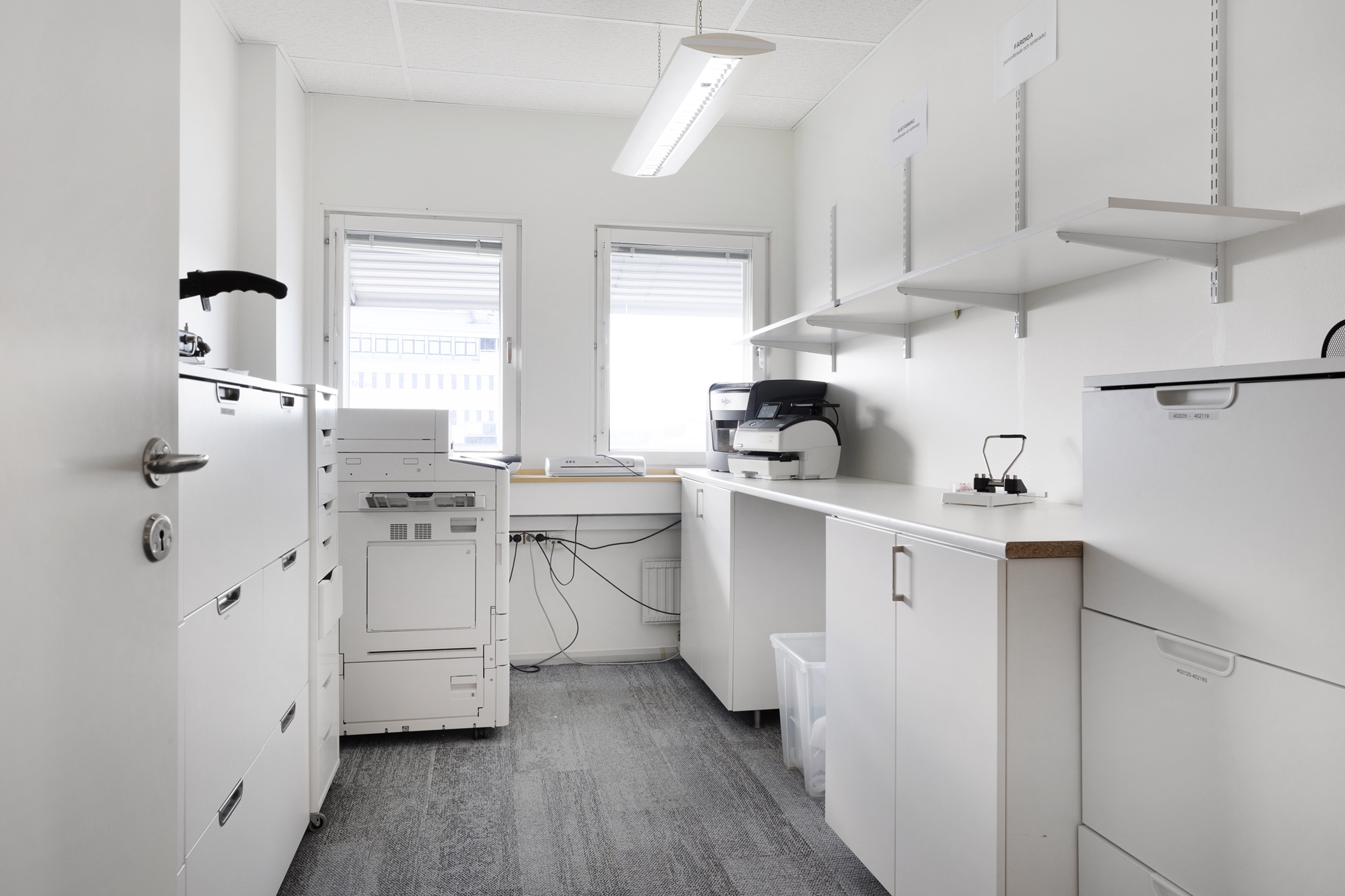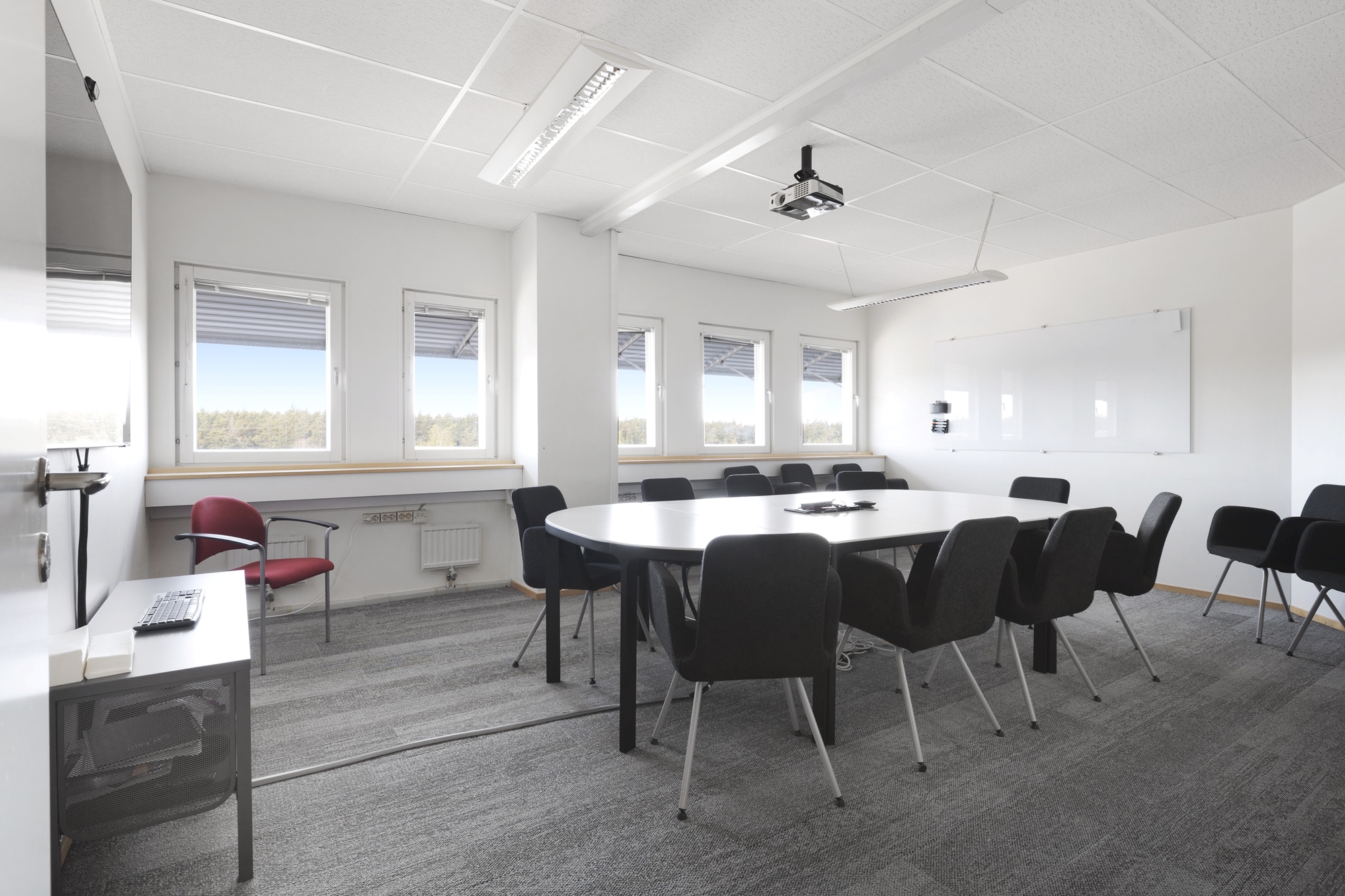 Lokalen har ett ljust och fritt läge med stora fönster som ger ett generöst ljusinsläpp och en trivsam arbetsmiljö.