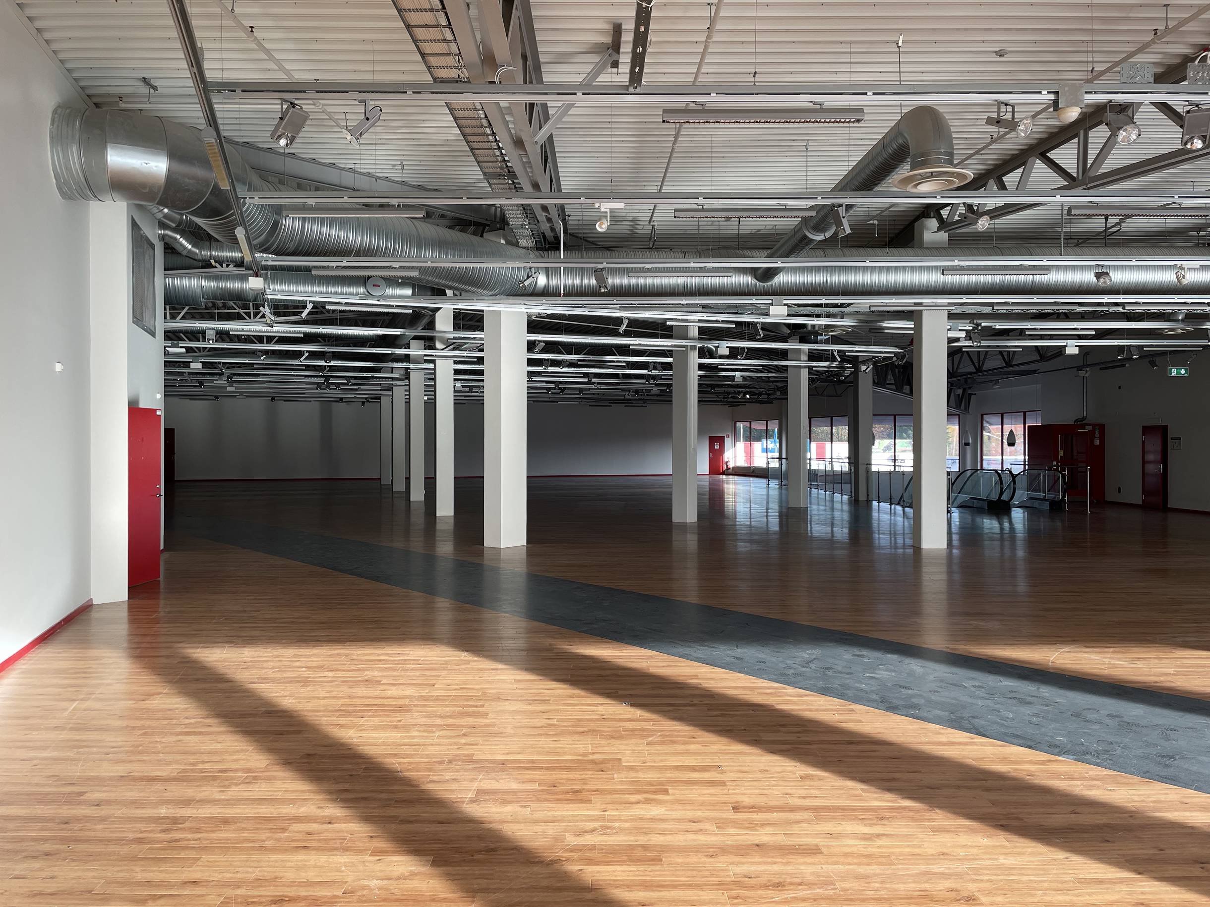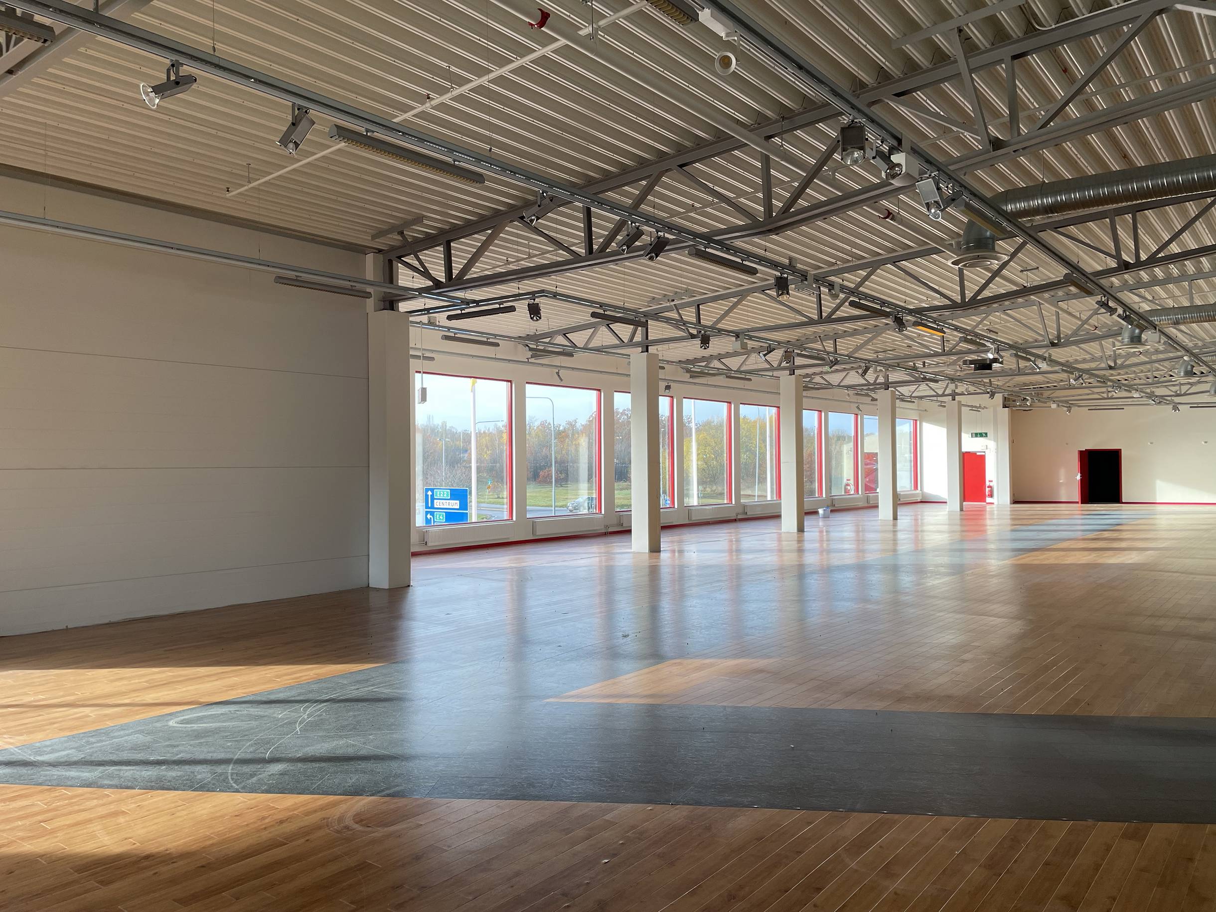 De öppna ytorna ger stor frihet att utforma och anpassa lokalen efter verksamhetens behov, oavsett om det gäller detaljhandel, showroom, träningsverksamhet eller annan publik verksamhet.