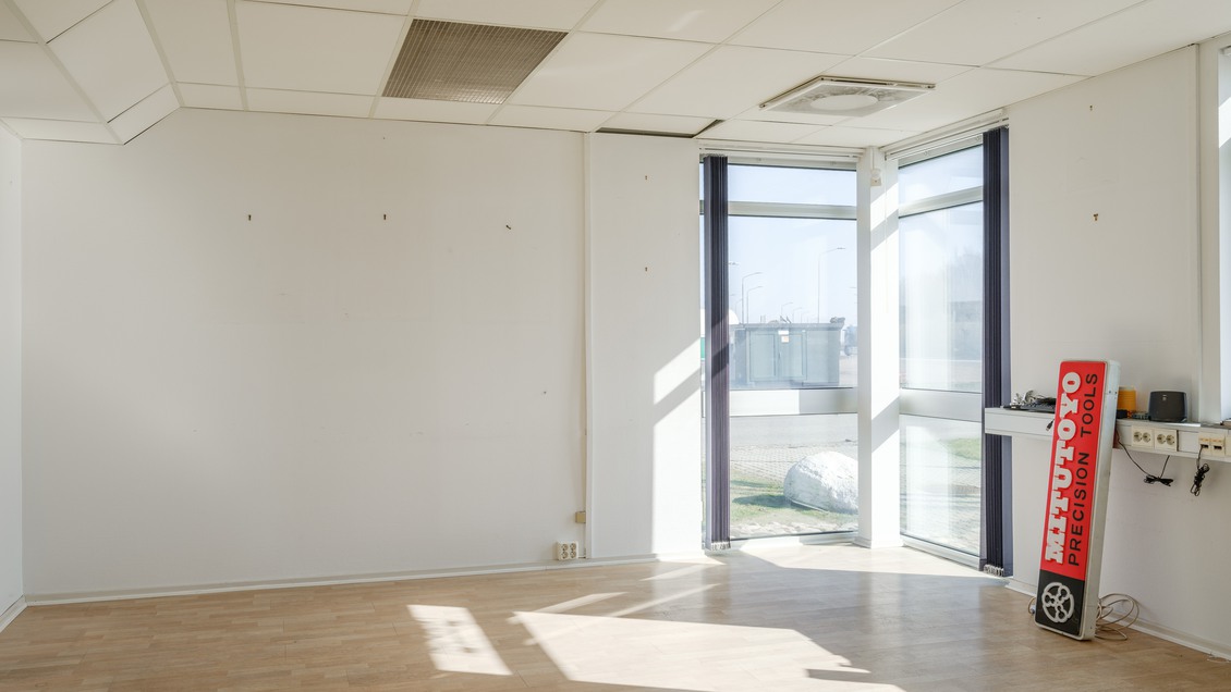 Här möts du av en egen port för smidig in- och utlastning samt en representativ entré som välkomnar både kunder och medarbetare in på kontoret. Lokalen erbjuder en praktisk planlösning där kontorsdelen naturligt övergår i lagerdelen, vilket skapar ett bra arbetsflöde.