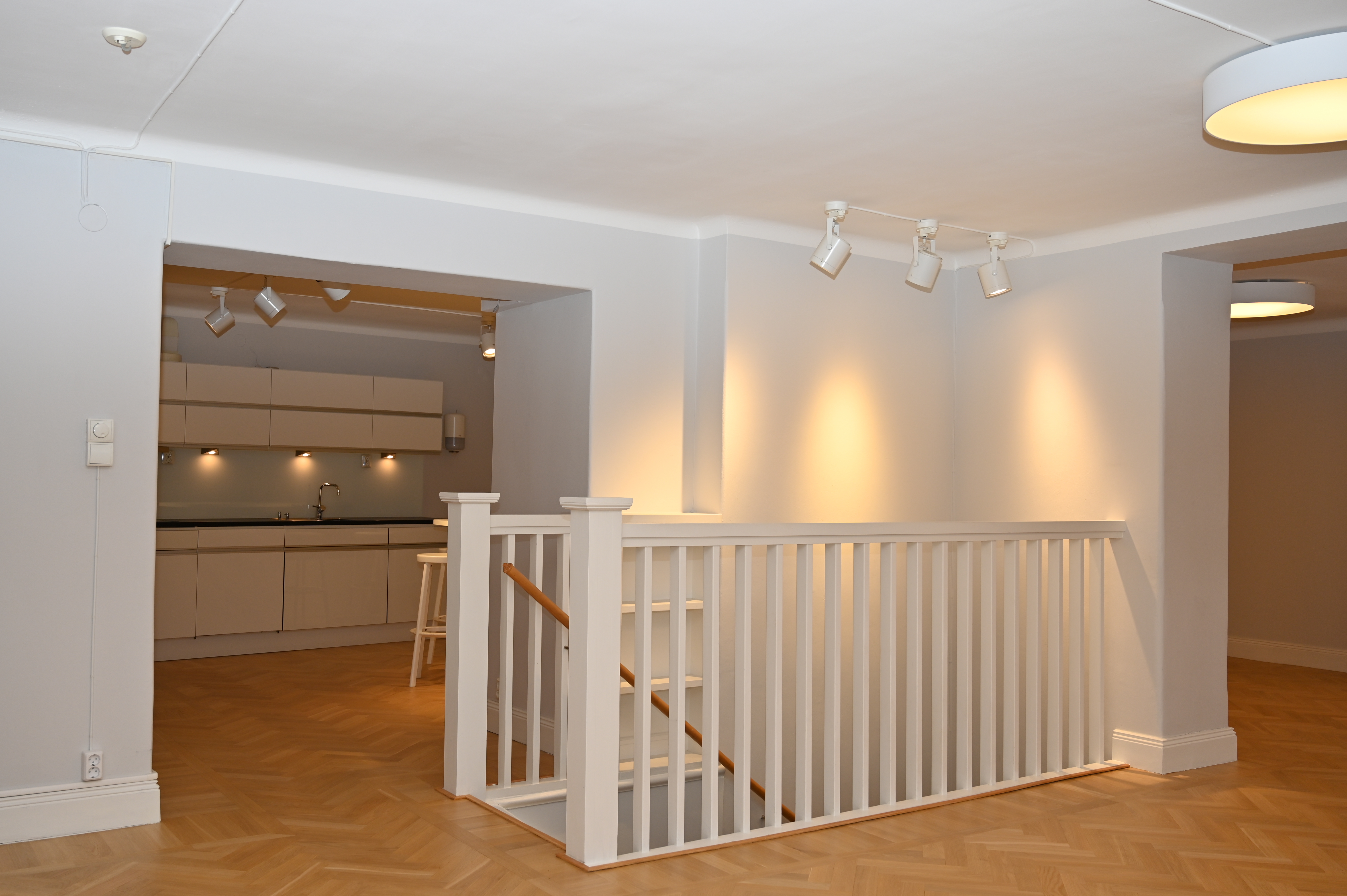 Lokalen renoverades varsamt för några år sedan efter arkitektens och antikvaries direktiv, med hög kvalitet och i tidstypiska material och färgval.