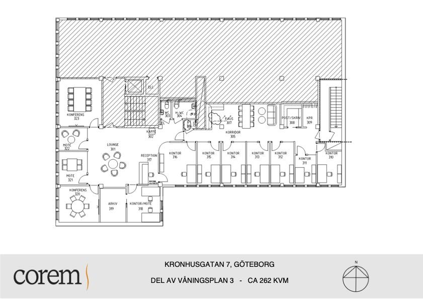 Välkommen till Kronhusgatan i centrala Göteborg och ett trevligt, nyrenoverat kontor – perfekt för det mindre företaget. Lokalen ligger på plan tre av fem och har utsikt mot en fin innergård. Planlösningen består av en blandning av rum och öppna ytor för att kunna tillgodose olika behov.
