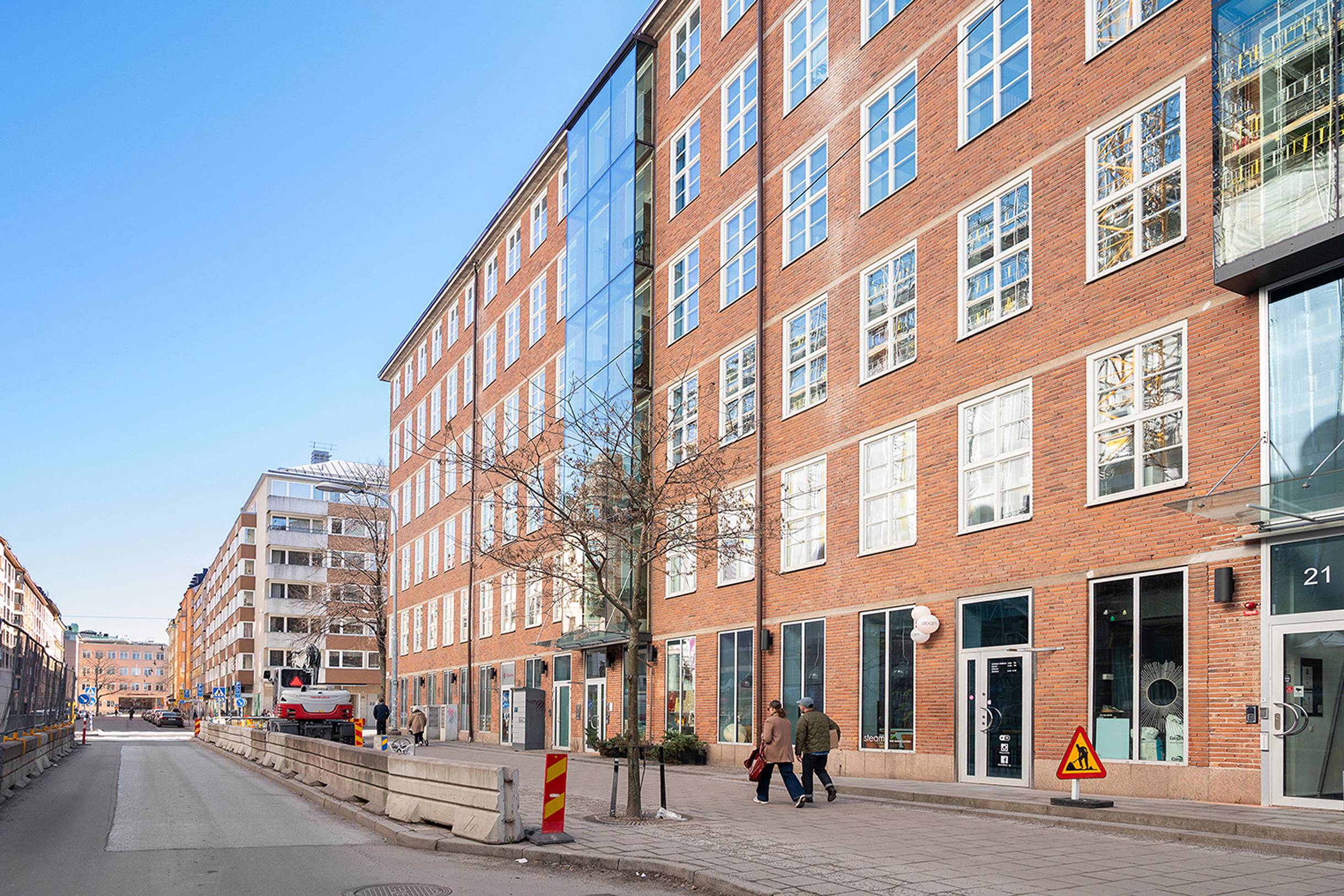 Mariatorgets tunnelbana på röda linjen 100 meter bort samt innerstadsbussar 4, 55 och 57.