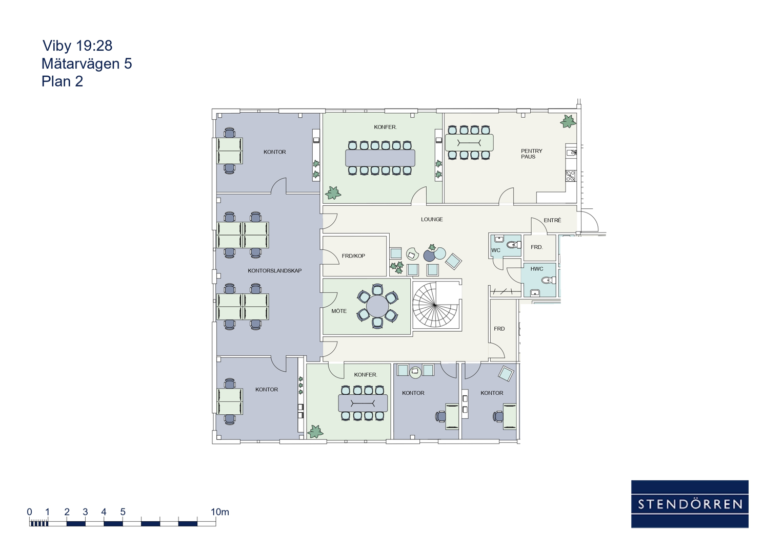• Blandad planlösning – både rumsindelade kontor och öppen yta