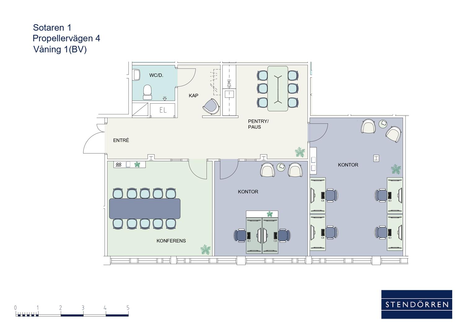 • Totalyta: 98 kvm i markplan, rumsindelat för både kontor och konferens.