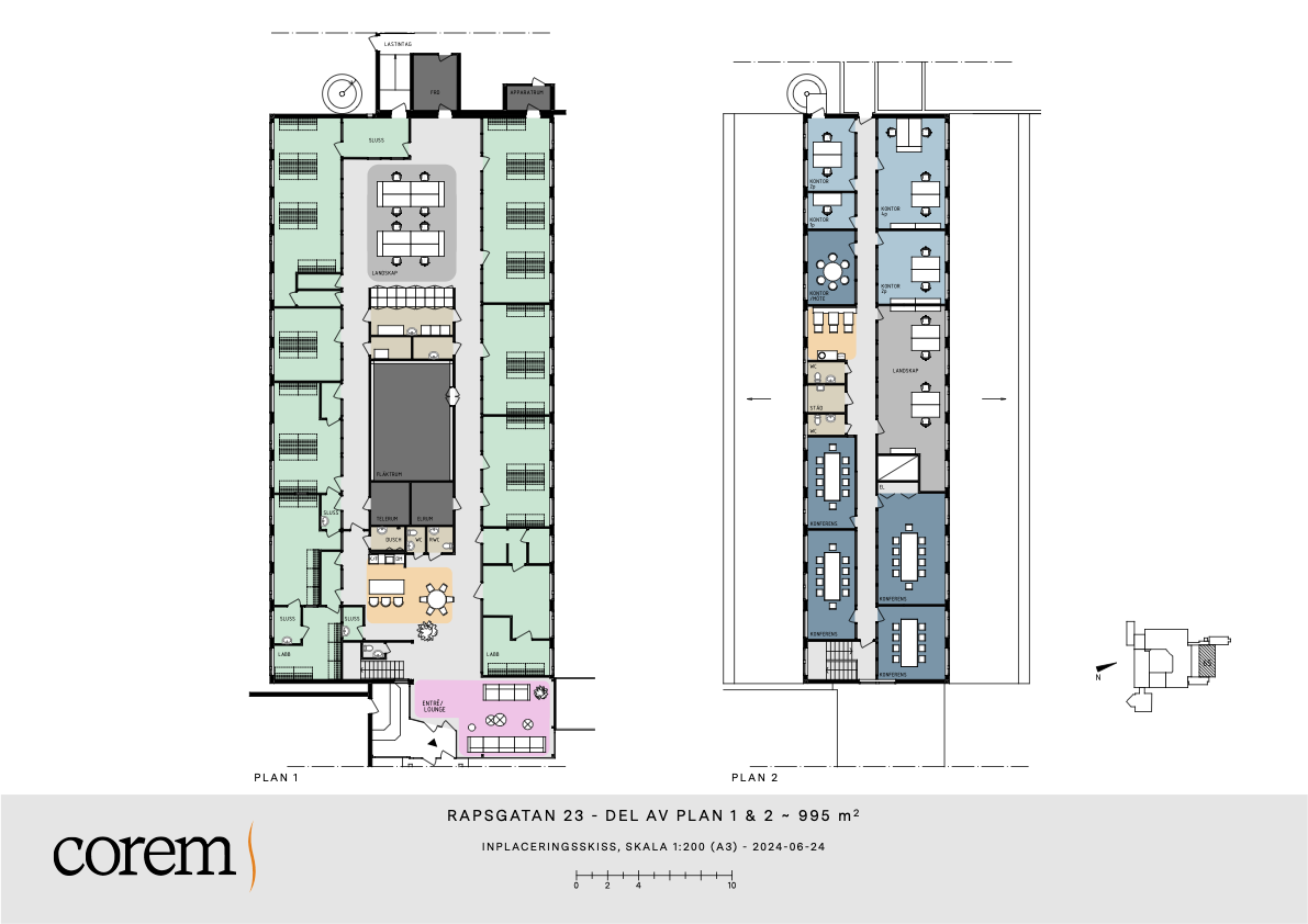 Välkommen till Rapsgatan 23 i innovativa Uppsala Business Park och en stor labblokal med labbänkar. Lokalen ligger i markplan med egen entré och reception. Här återfinns tryckluft, kväve och flera rum med personalslussar. Övre plan består av kontorsrum och ett mindre pentry. Lastintag kan ske från baksidan av huset.