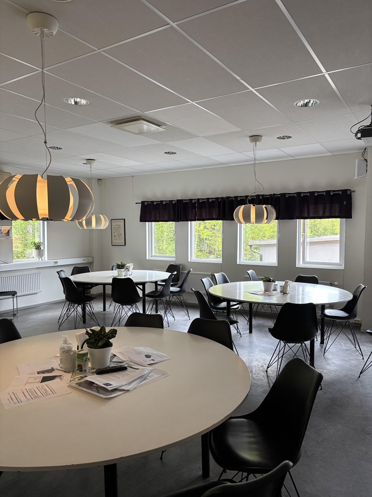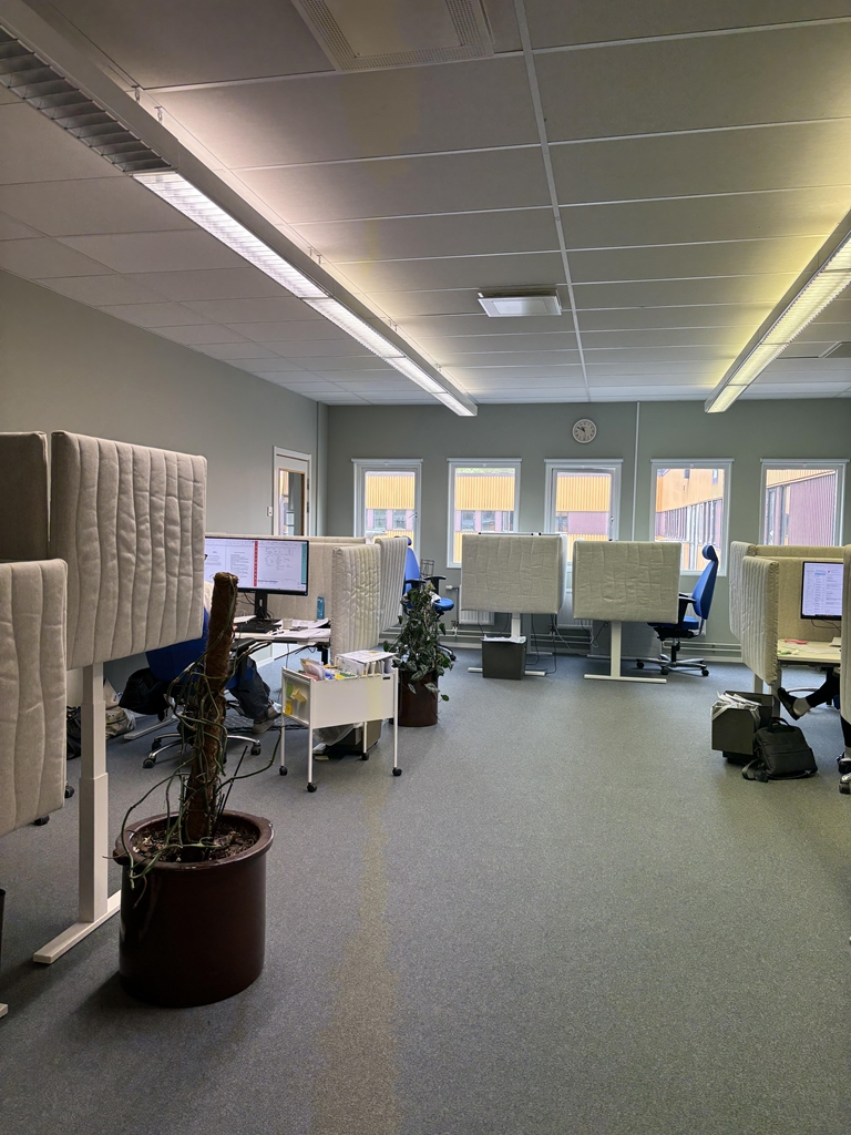 Kontorsdelen ligger direkt ovanför lagret och där finns flera rum i varierande storlek. Här finns plats för både kontorsplatser, mötesrum och personalutrymmen.