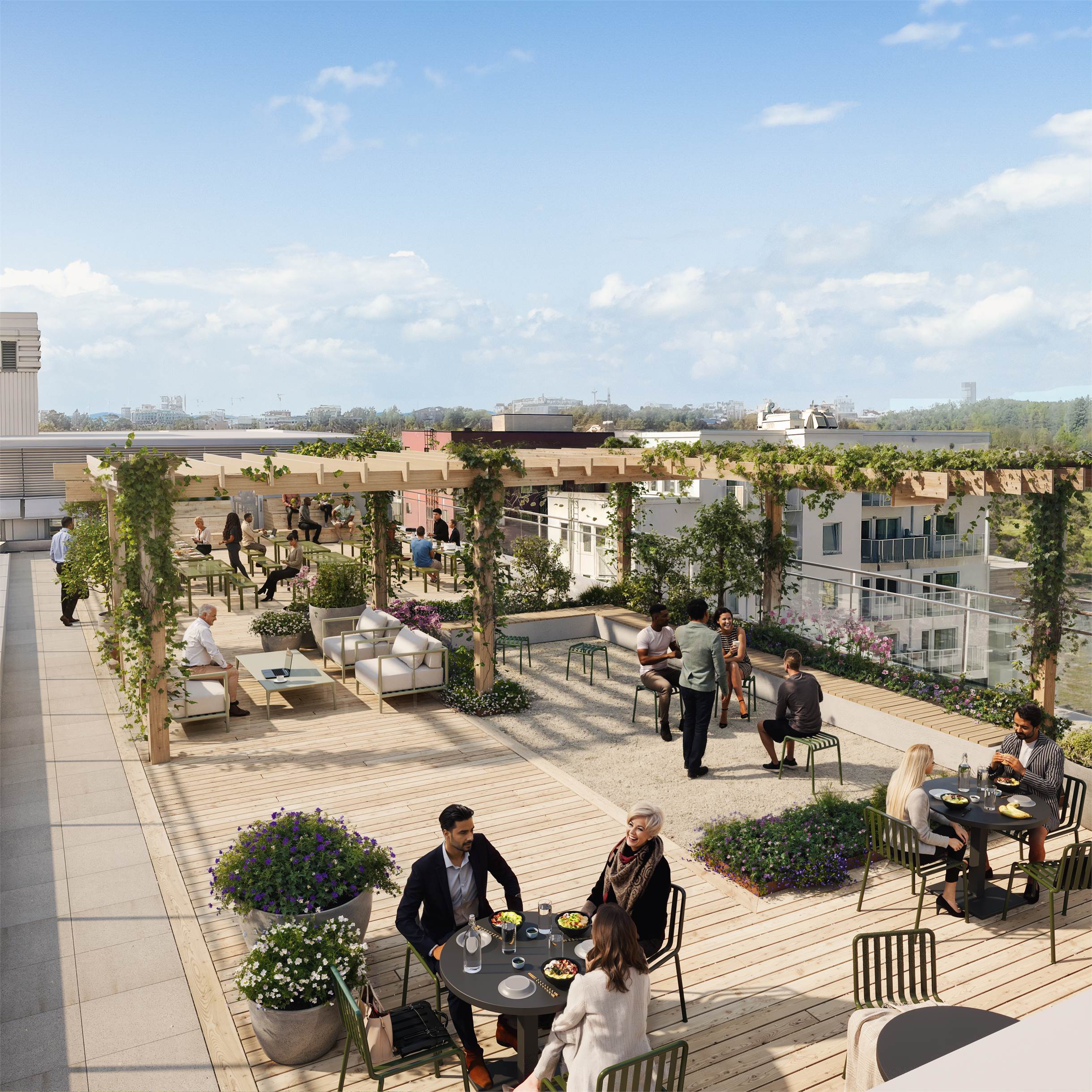 Området erbjuder ett rikt serviceutbud med caféer, restauranger, butiker och gym på kort promenadavstånd. Här skapas en naturlig puls där verksamheter och bostäder samverkar, vilket gör det enkelt att attrahera medarbetare och besökare. Nordic Wellness och Sundbybergs Rackethall finns nära, och flera grönområden erbjuder möjlighet till avkoppling och aktivitet.