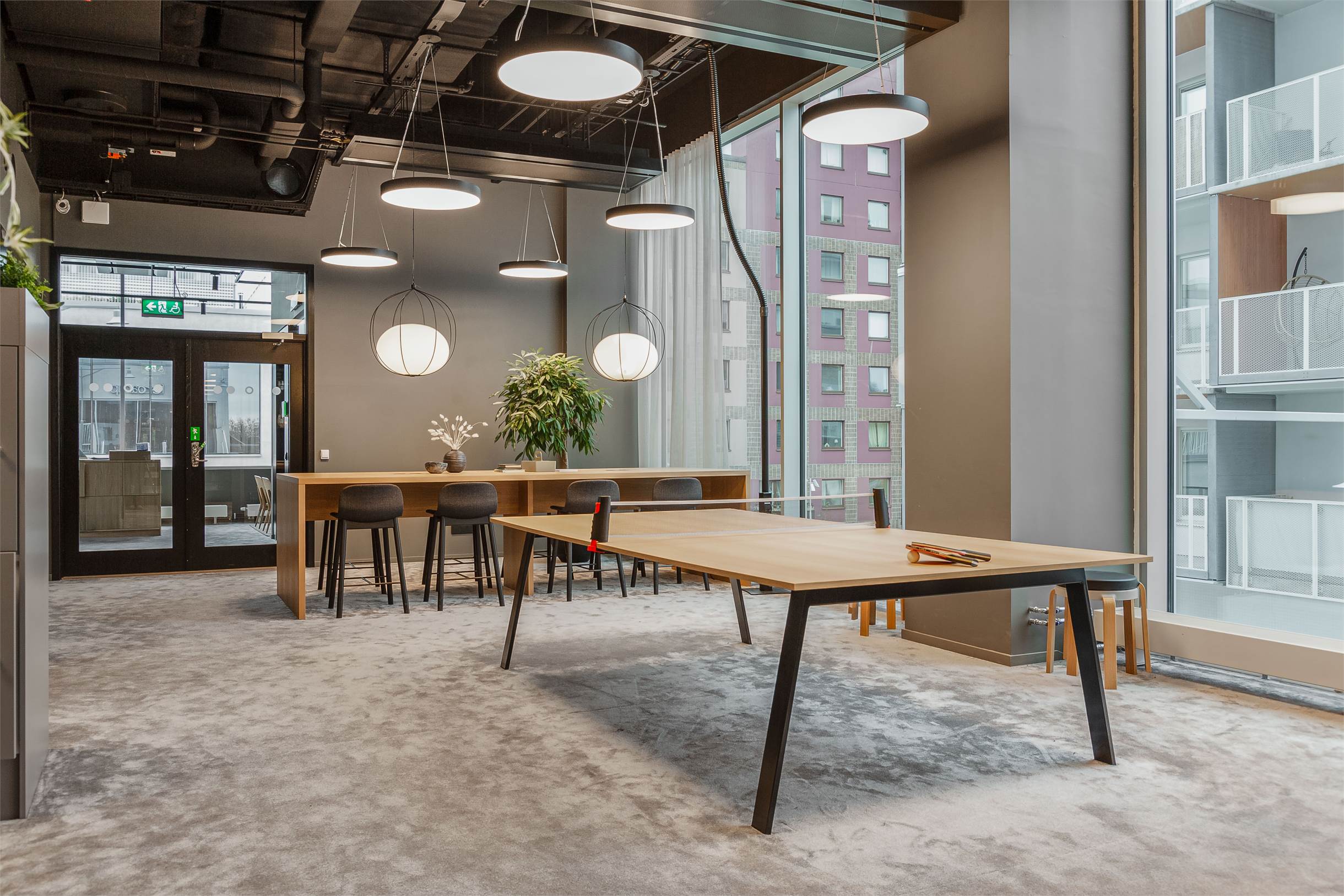 Byggnaden är framtidssäkrad med hållbar teknik: geoenergi, vindkraft och solceller ger en helt CO₂-fri energianvändning, och fastigheten är miljöcertifierad enligt BREEAM.