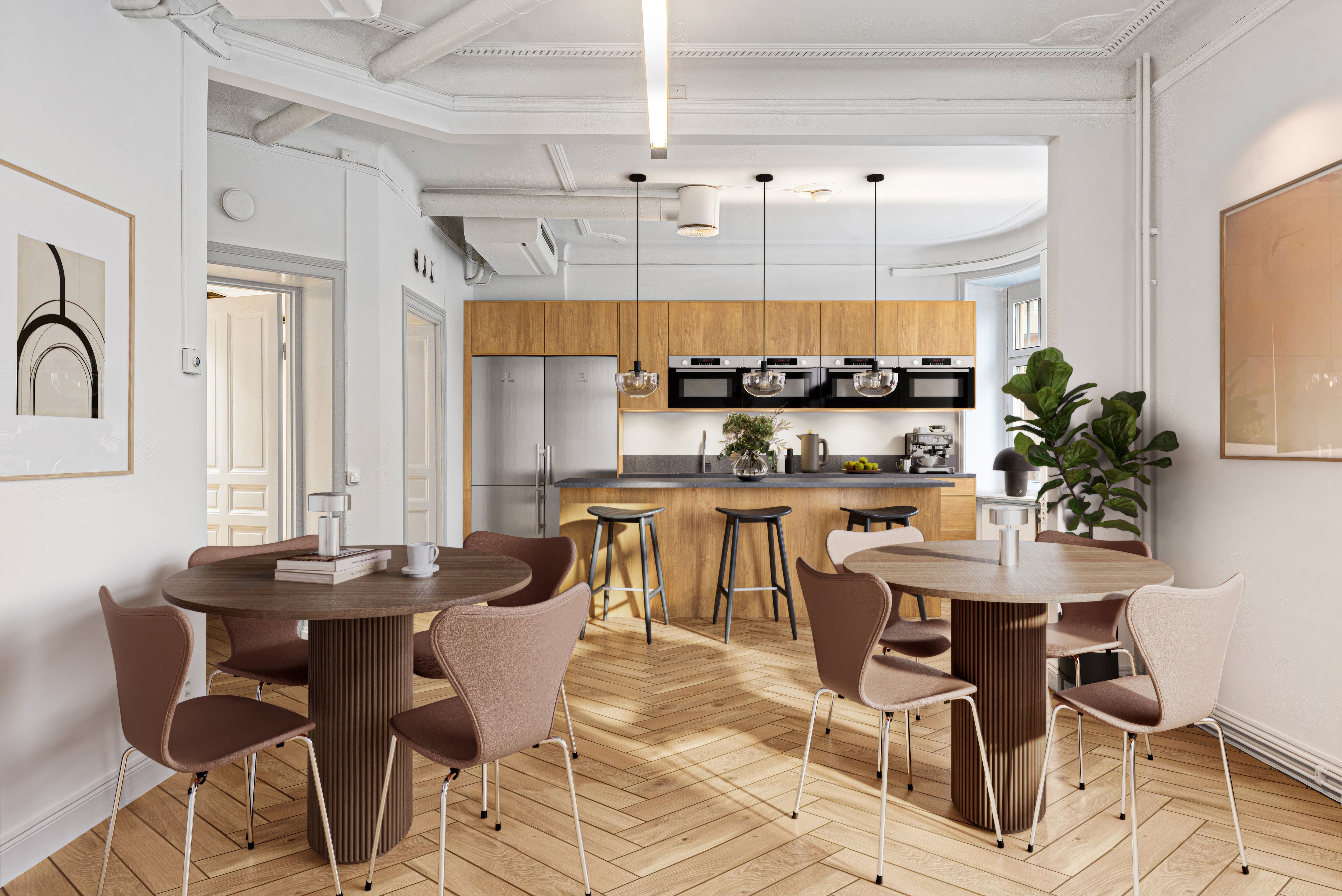 Centralt Kungsholmsläge nära Fridhemsplan med brett utbud av lunchställen, service och handel. God vardagslogistik för medarbetare och besökare.