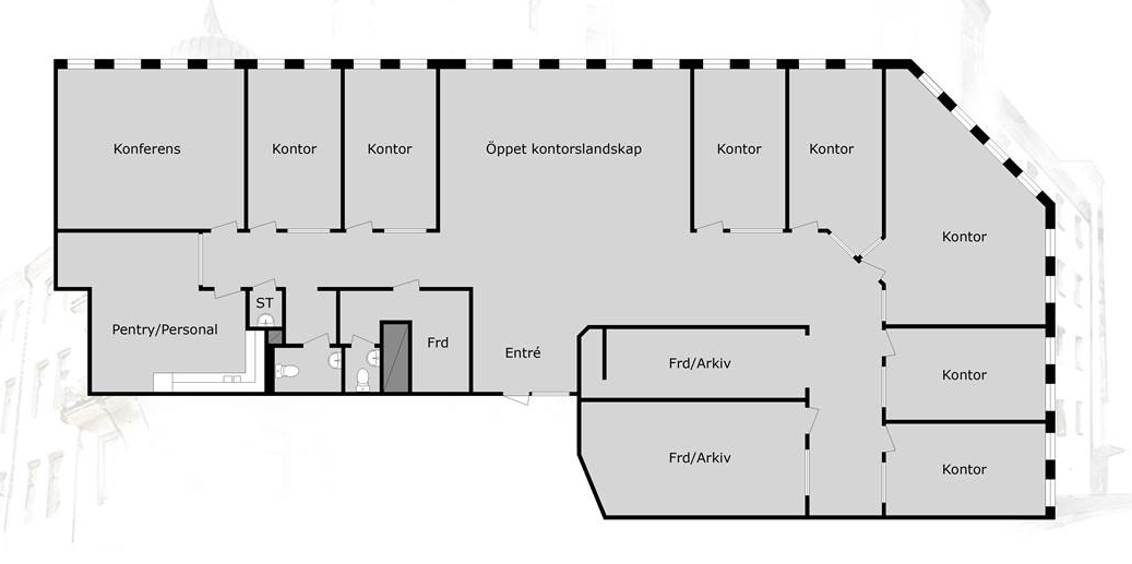 Lokalen har en öppen och ljus planlösning som enkelt kan anpassas till verksamhetens behov – oavsett om ni föredrar öppet landskap, kombikontor eller fler rum för möten och fokusarbete.