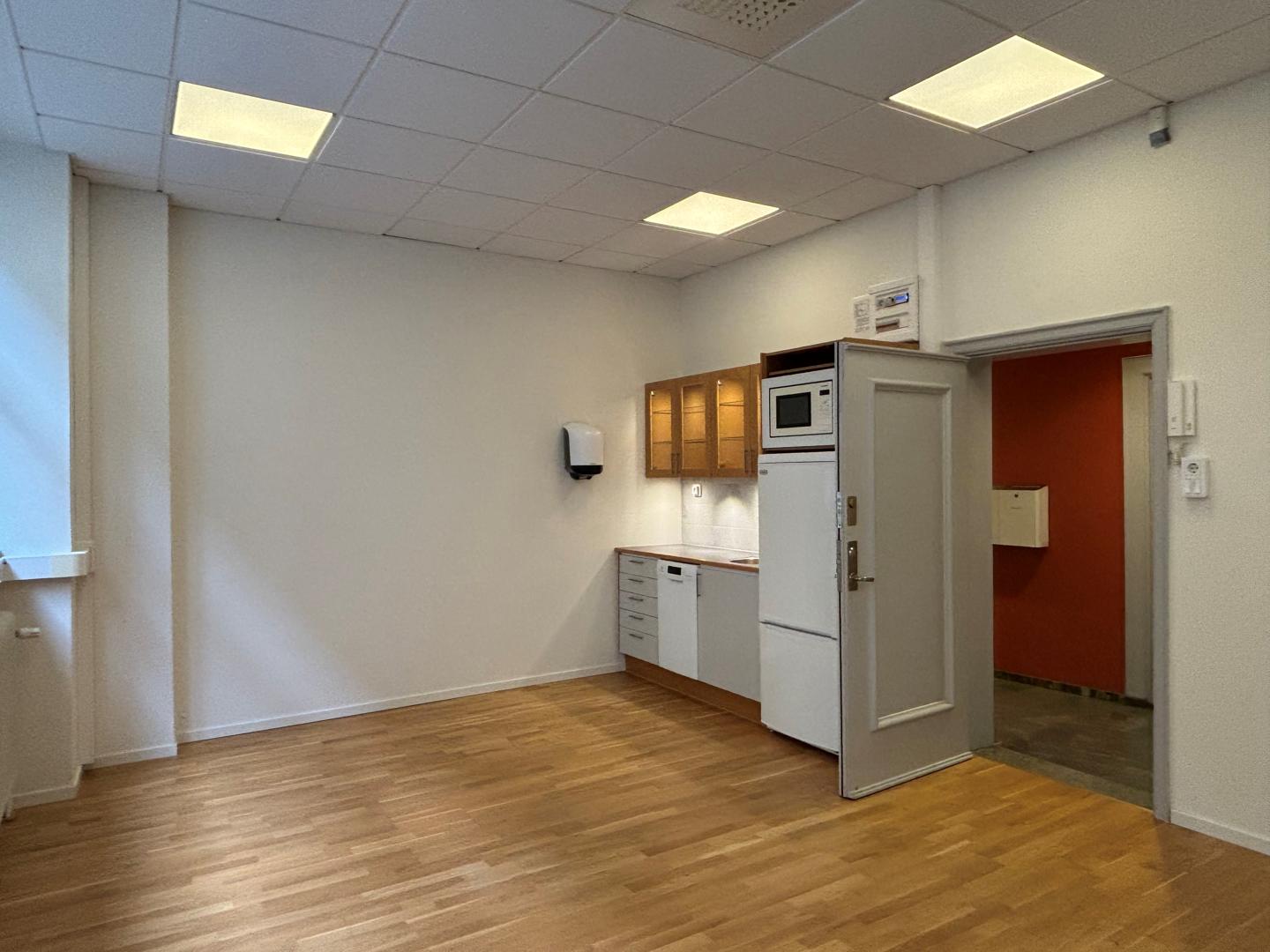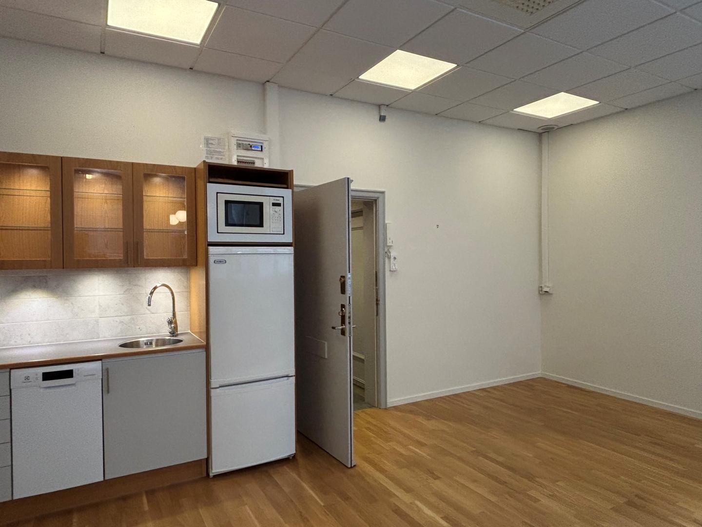 Här erbjuds ett kontorsrum i bottenplan med ett mindre pentry.