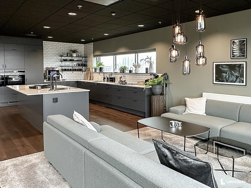 Lokalen erbjuder moderna ytskikt, hög ljudisolering och en trivsam känsla med utsikt mot Frölunda Torg och området omkring. Den ljusa lounge- och köksdelen blir en naturlig samlingspunkt och har direkt access till en egen balkong. Intill det större konferensrummet finns en praktisk paus- och kaffestation.