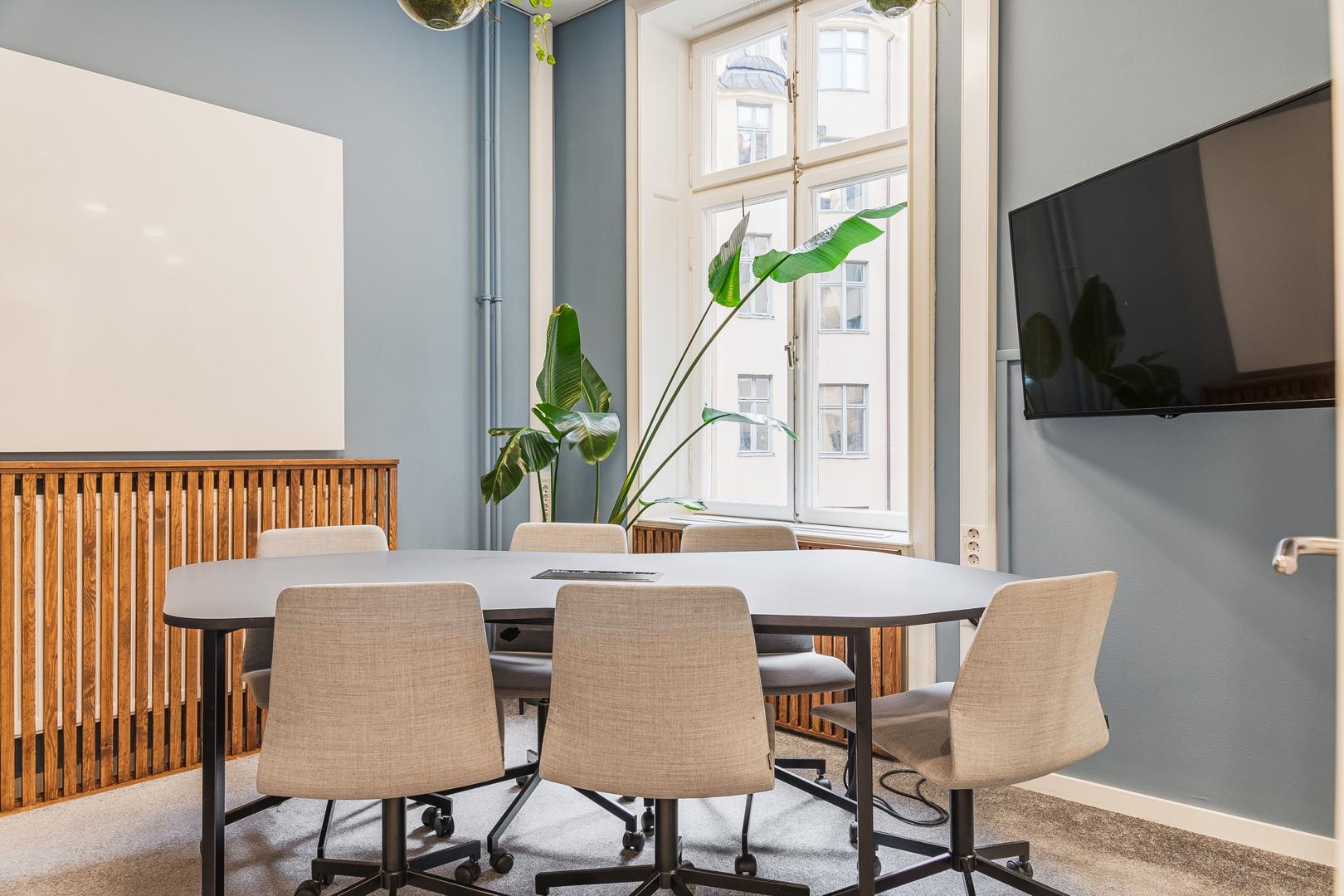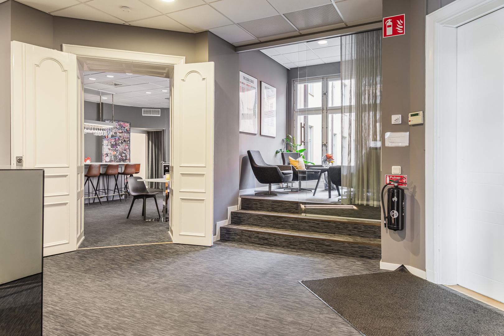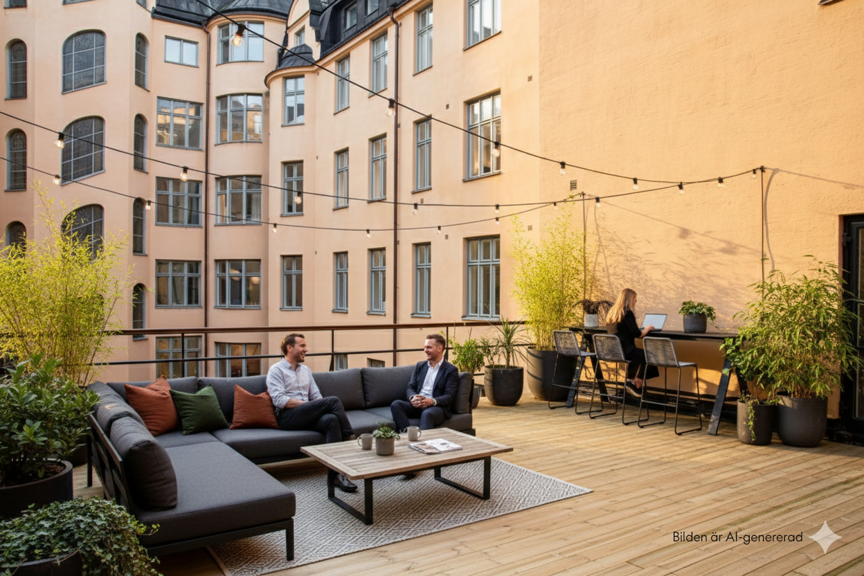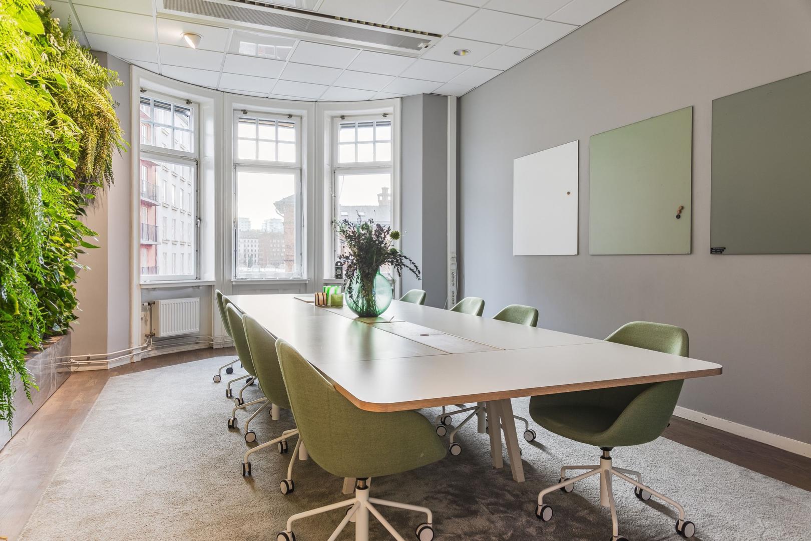 Möjlighet att hyra en charmig sekelskifteslokal med direkt access till terrass. God variation av mötesrum i olika storlekar samt öppet landskap i olika delar av lokalen.