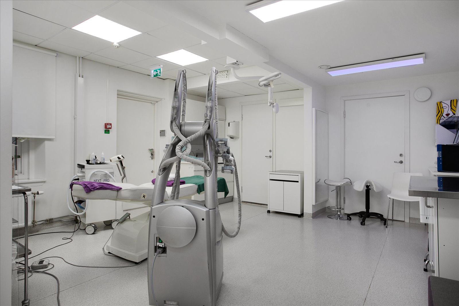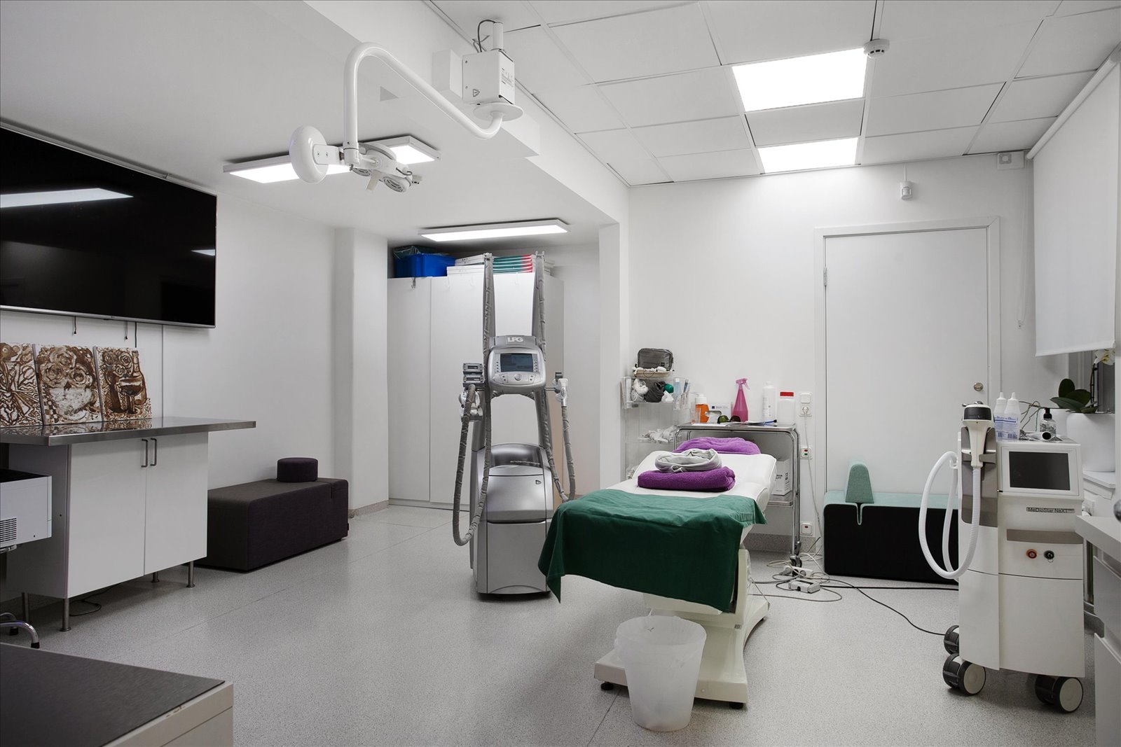 I lokalen bedrivs idag verksamhet som utför estetiska behandlingar och plastikkirurgi, och ytorna är således anpassade med reception, väntrum och fem behandlingsrum med WC i anslutning. Se mer under Planritning .