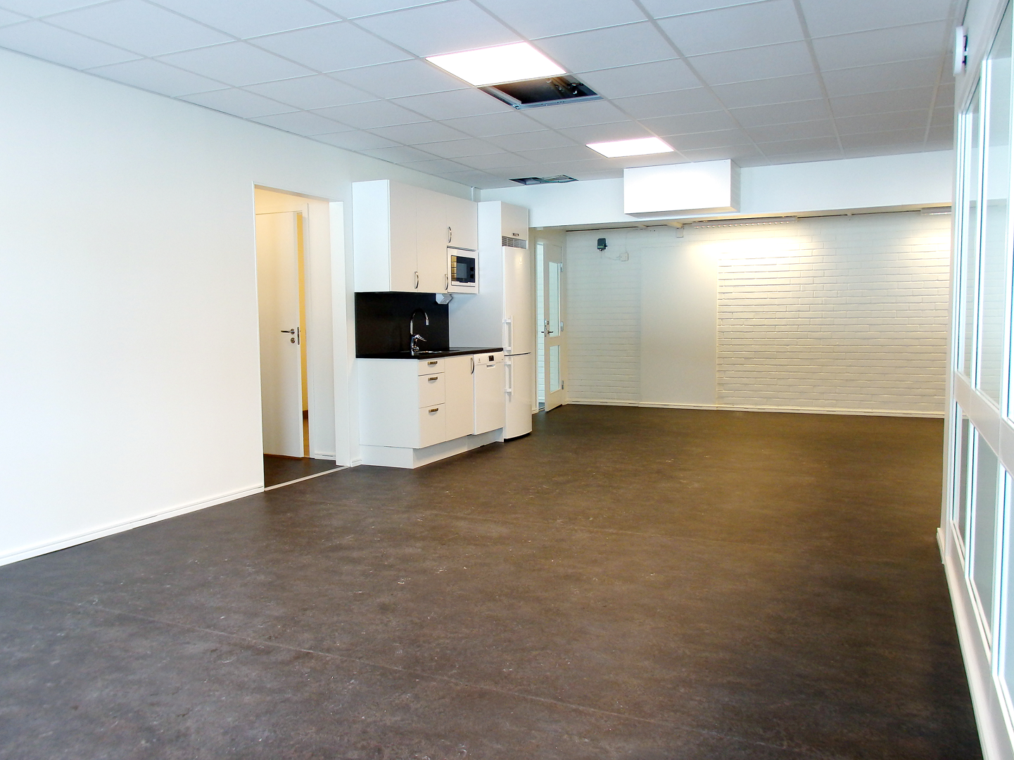Lokalen är i dagsläget uppdelad på två separata lokaler men möjlighet finns att öppna upp mellan dem för att skapa en sammansatt yta.