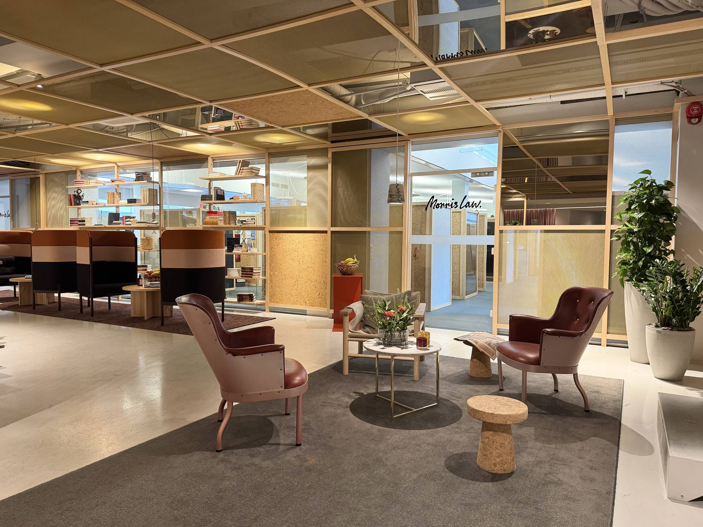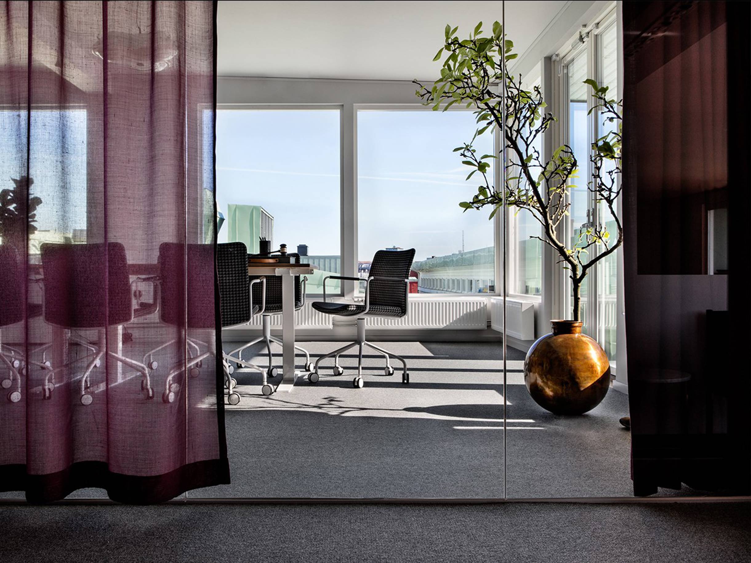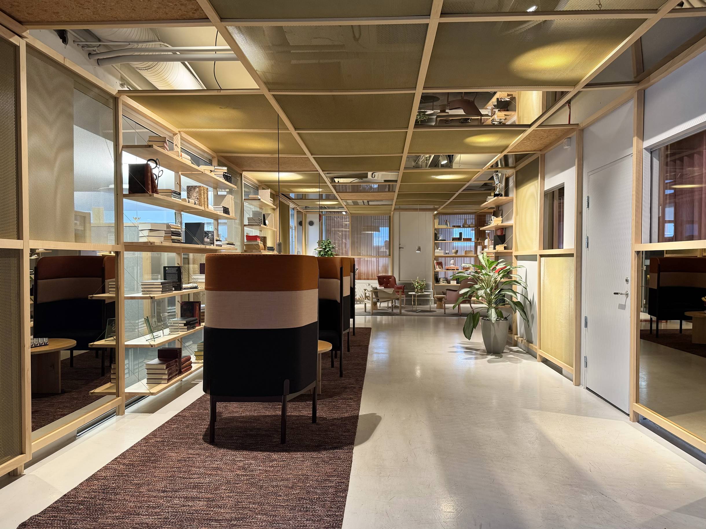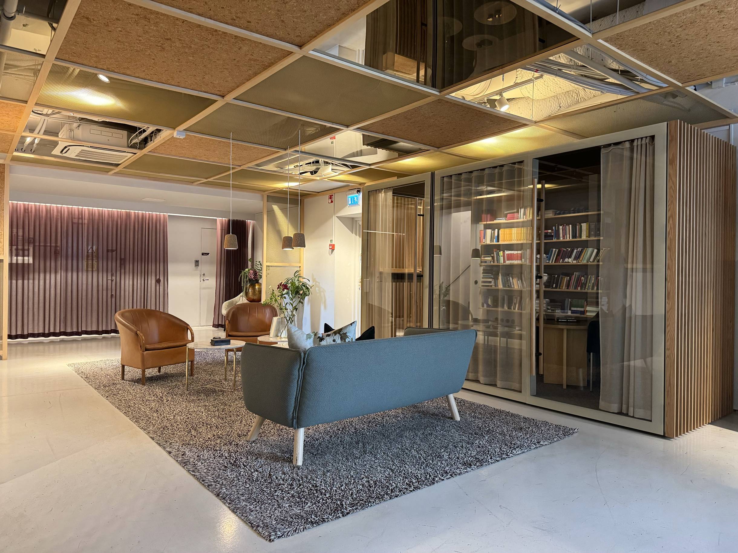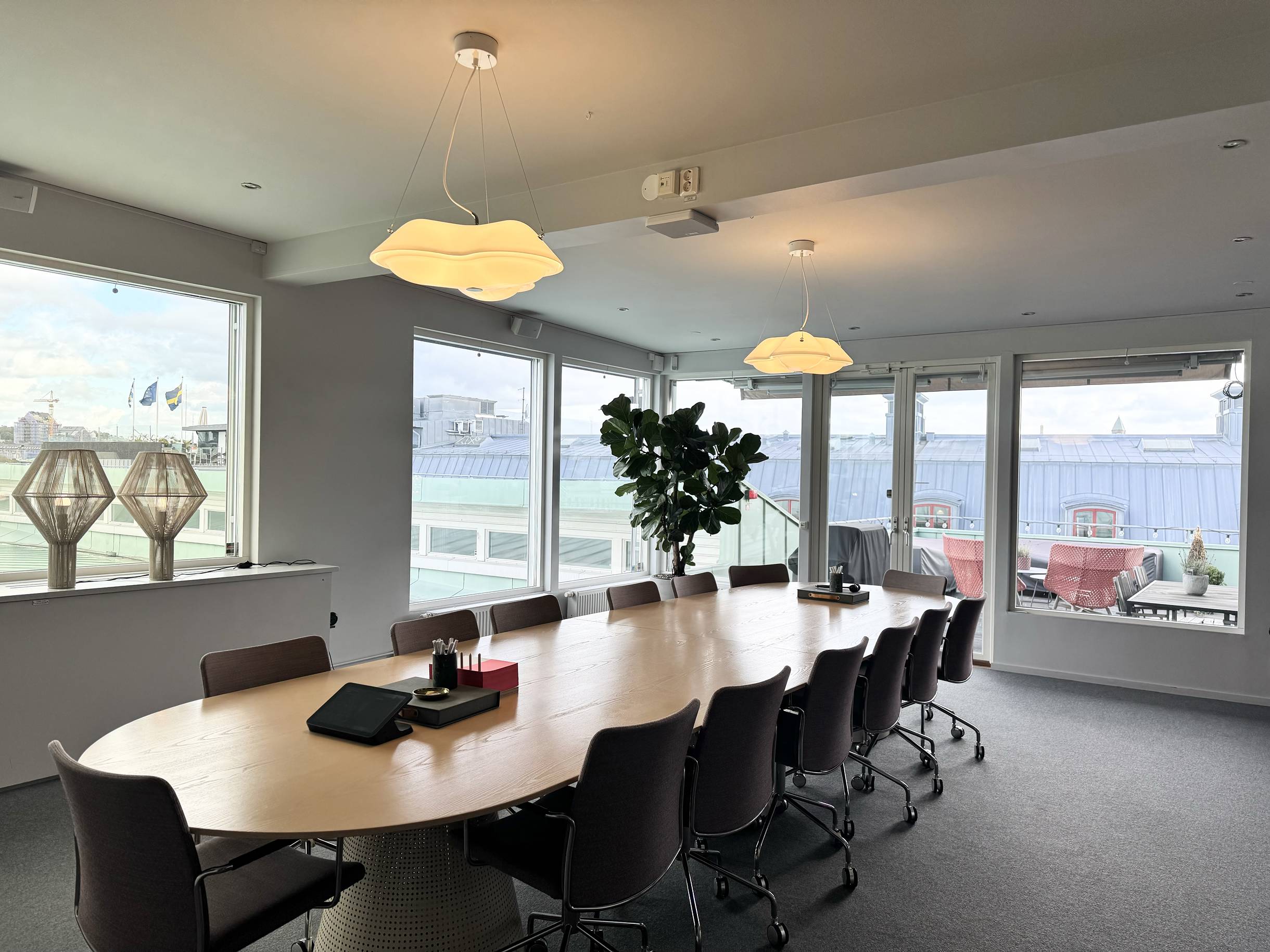 Öppen planlösning med flertal mötesrum i olika storlekar. Kök och pausyta med magisk takterrass.