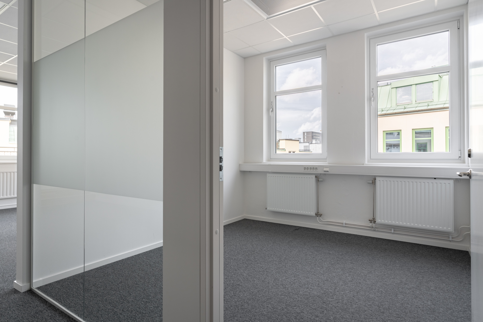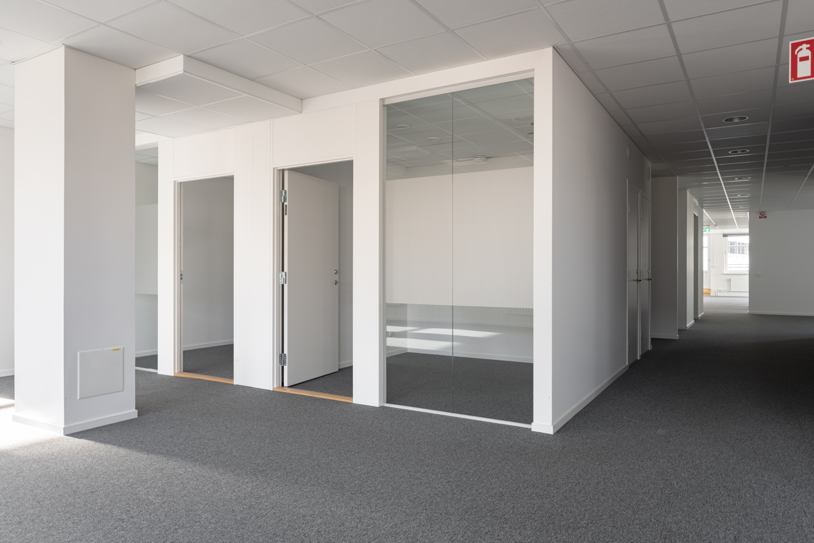 Denna funkisfastighet har genomgått en varsam renovering och erbjuder nu moderna, flexibla kontorslokaler med välkomnande entréer.