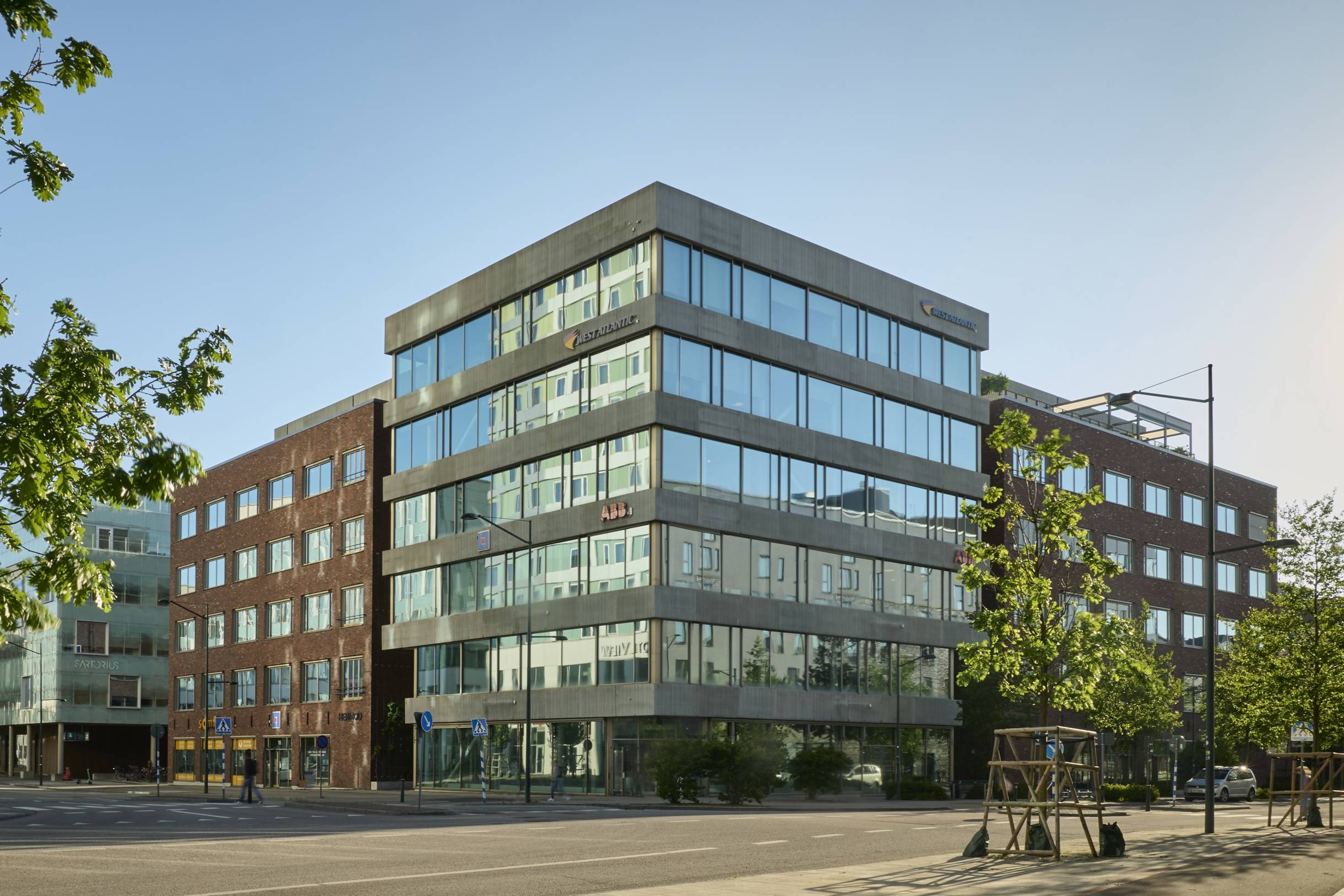 Inom gångavstånd finns service såsom hotell, konferensanläggningar, köpcentrum, restauranger, frisörer, gym, simhall mm. Mellan husen finns mindre parker och gröna oaser.