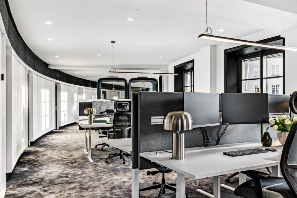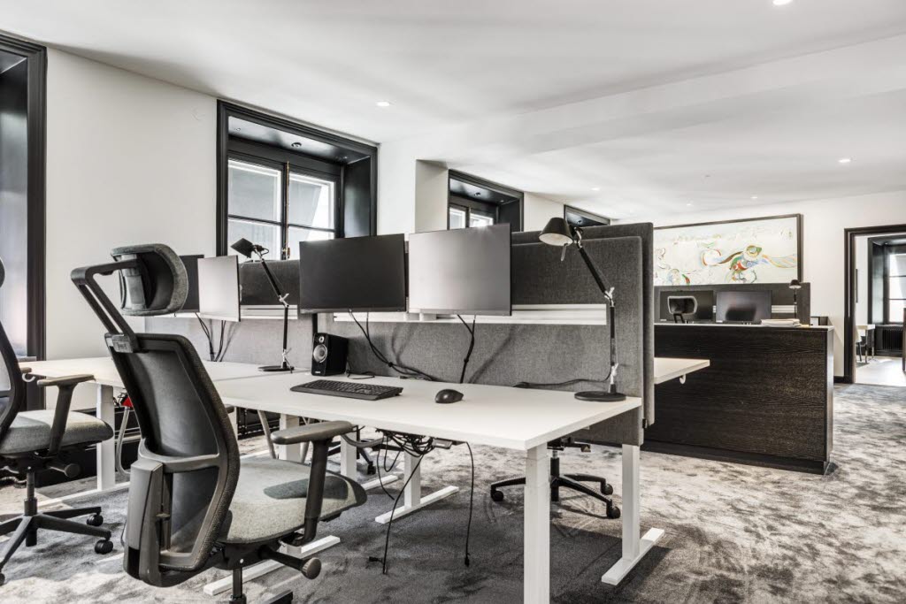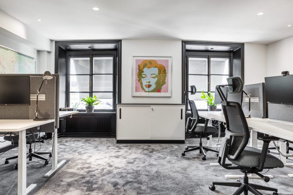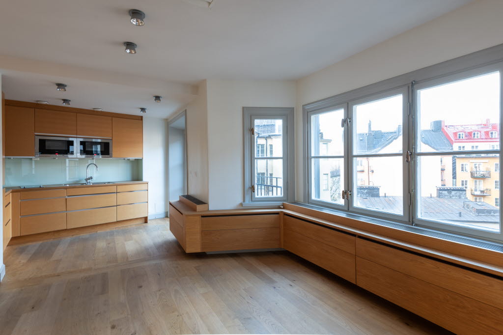 Lokalen är belägen på plan 5 av 6 och består både av öppen planlösning och med enskilda kontor. Man välkomnas in i en ljus och rymlig köksdel med vackert burspråk i originalskick. Den öppna arbetsytan bjuder på stort ljusinsläpp och de ekfärgade snickerierna ger lokalen karaktär. Vidare finns det gott om samtals- och mötesrum.