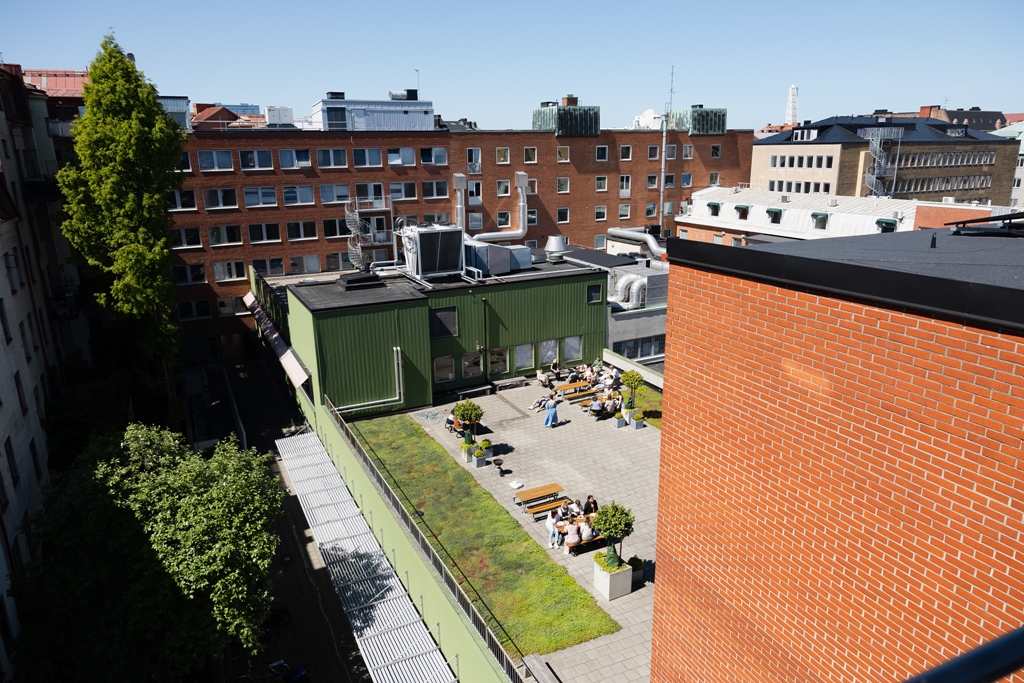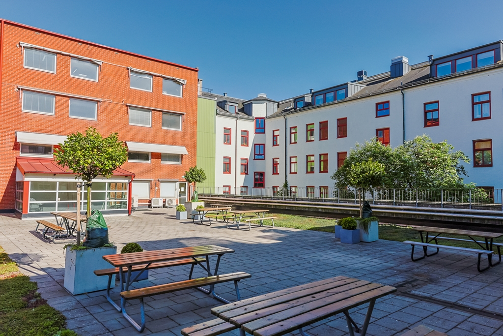 En härlig terrass finns i anslutning till lokalen där ni kan ta en paus och njuta ev en kopp kaffe.