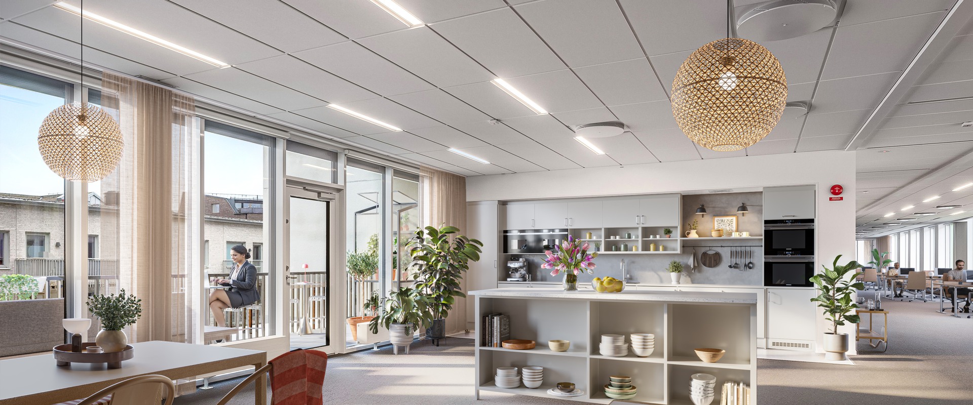 Lokalen erbjuder en öppen och ljus planlösning där stora fönsterpartier skapar ett härligt ljusinsläpp. Den södervända balkongen blir en naturlig förlängning av arbetsplatsen , idealisk för en paus i solen eller ett informellt möte utomhus.