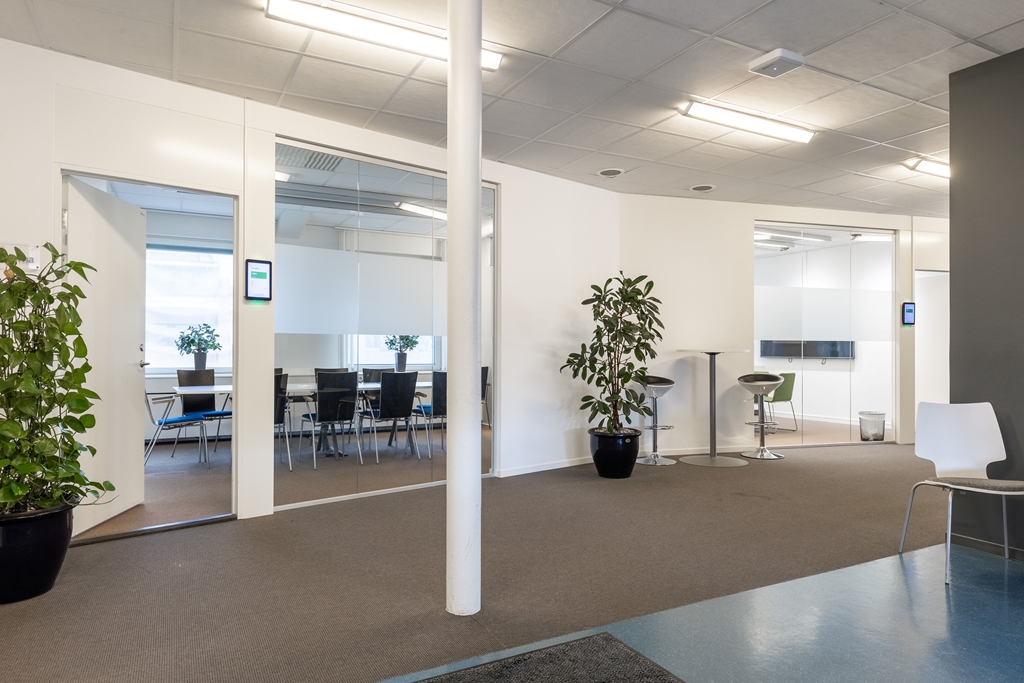 Här finner ni utmärkta kommunikationer med både bussar och spårvagnar, samt ett flertal restauranger för både lunch och afterwork.