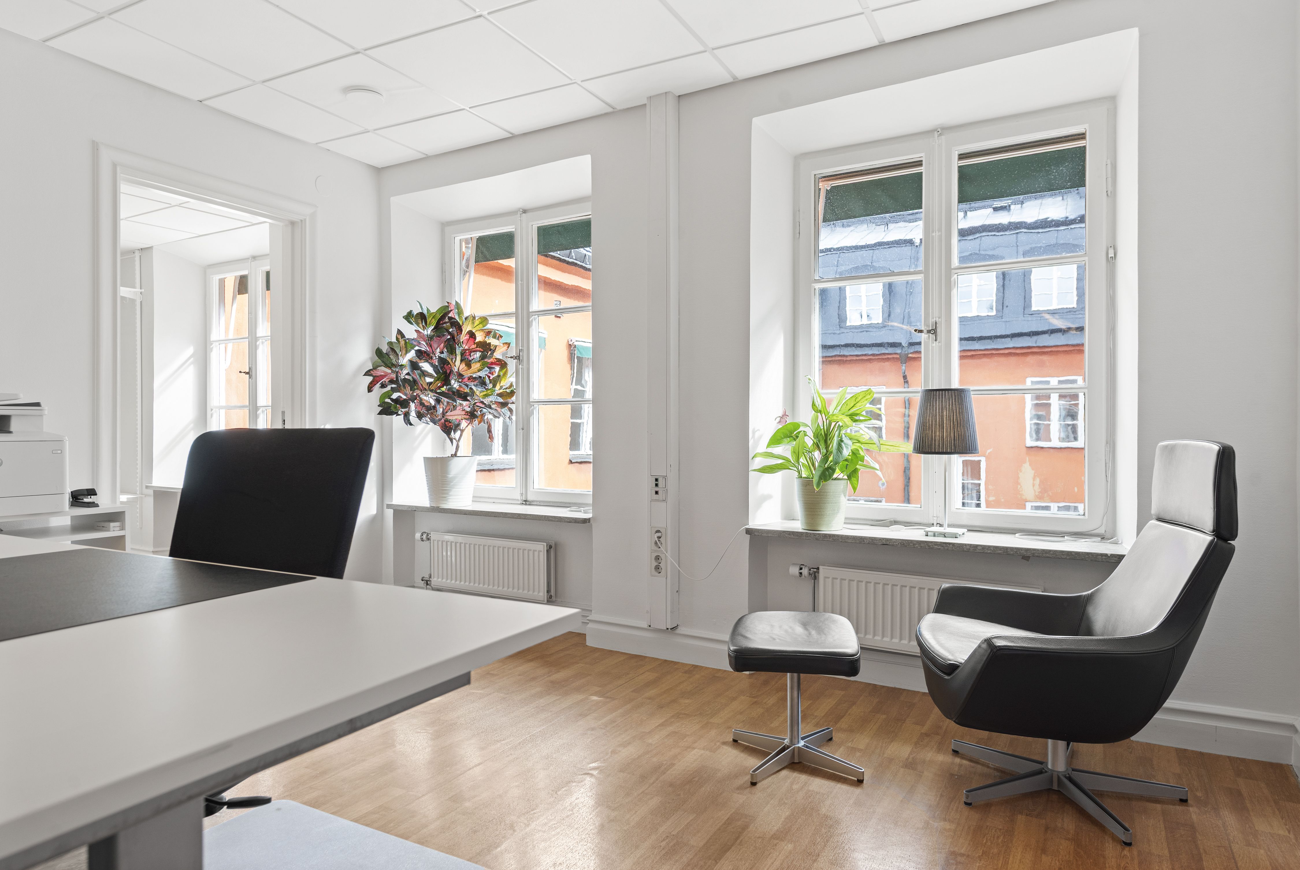 Kontoret på våning 3 är disponerat med ett rum som rymmer upp till 4 arbetsplatser samt ett separat mötesrum för interna samtal. Tack vare fastighetens gemensamma konferensytor kan ni ta emot större sällskap och externa besökare i husets miljöer utan att belasta den egna kontorsytan. Som hyresgäst har ni även tillgång till en trevlig innergård.
