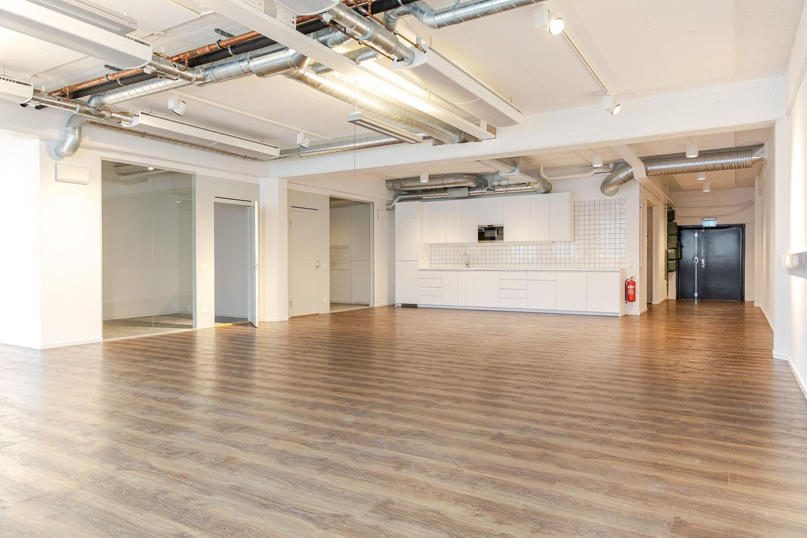 Lokalen ligger i en tidigare industrifastighet som idag är en livfull mixad byggnad med olika verksamheter. Med stora fönster och en generös öppen planlösning skapas en arbetsmiljö som uppmuntrar till samarbete och gemenskap. Här finns även mötesrum för fokuserade samtal och kreativa diskussioner. I trapphuset väntar lunchrestaurangen Niklas & Friends – en naturlig mötesplats under arbetsdagen.