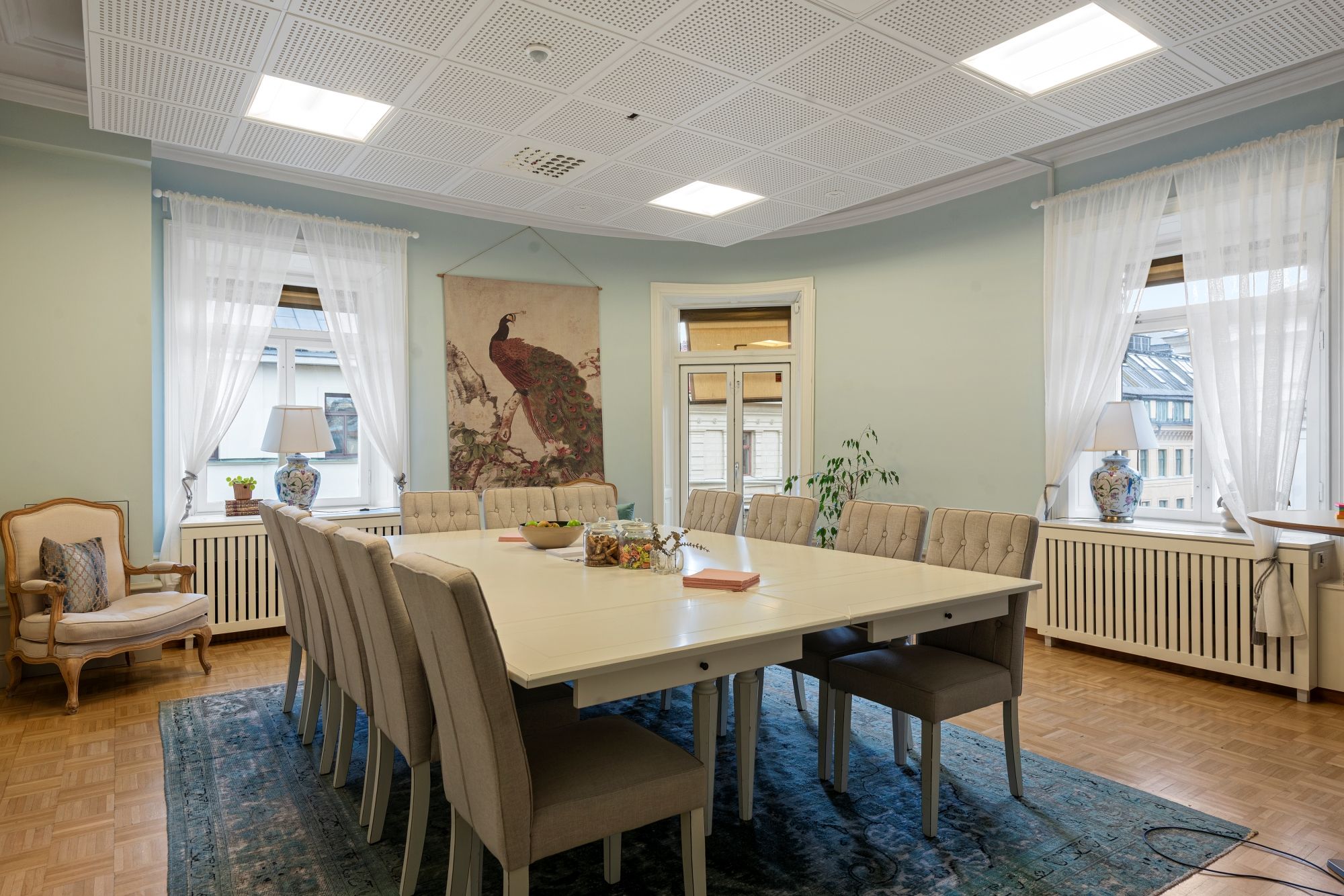 Möjlighet att få till en tydlig intern och extern yta i lokalen med bra allokering av mötesrum intill entrén.