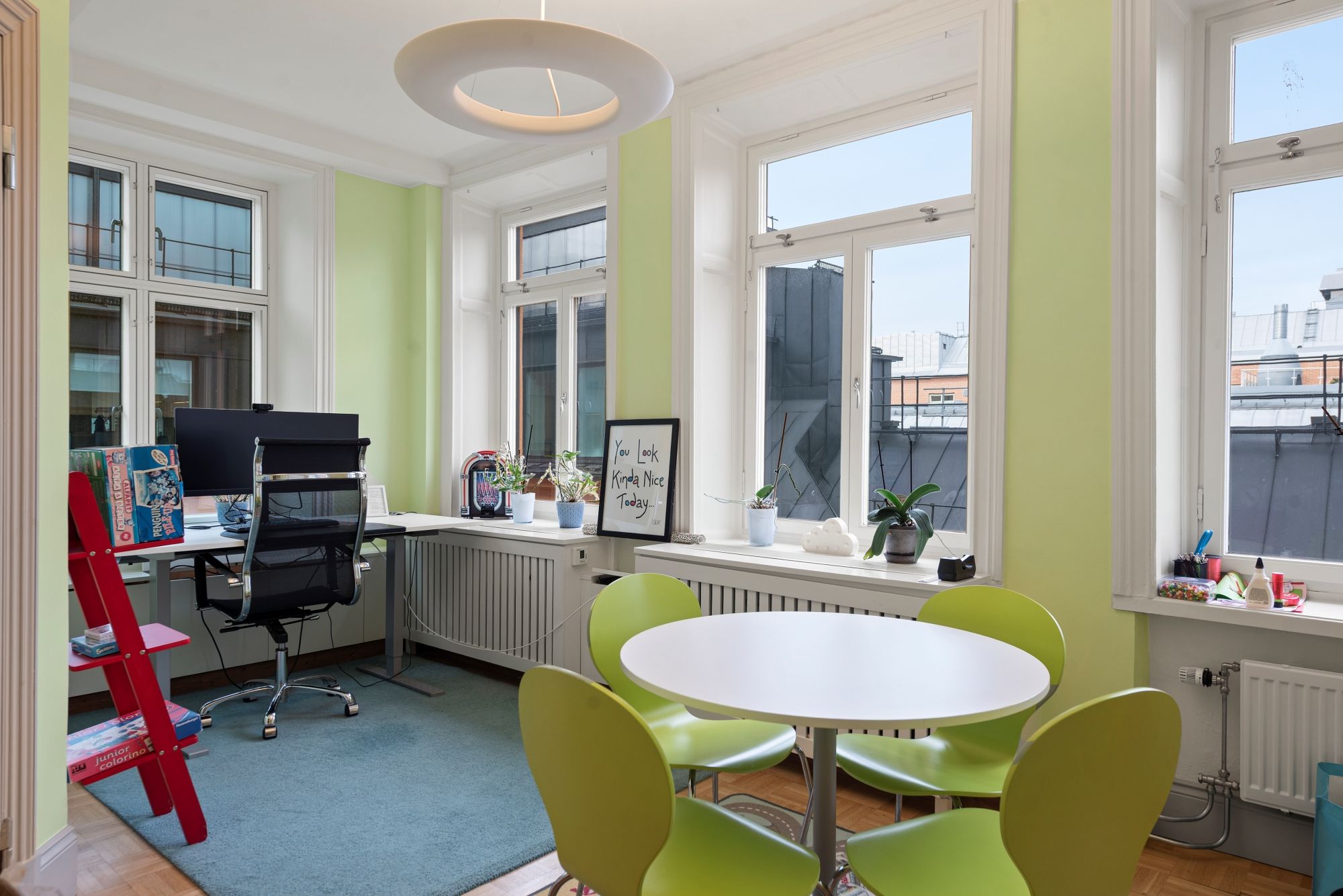 Hörnlokal högt upp i huset med balkong!
