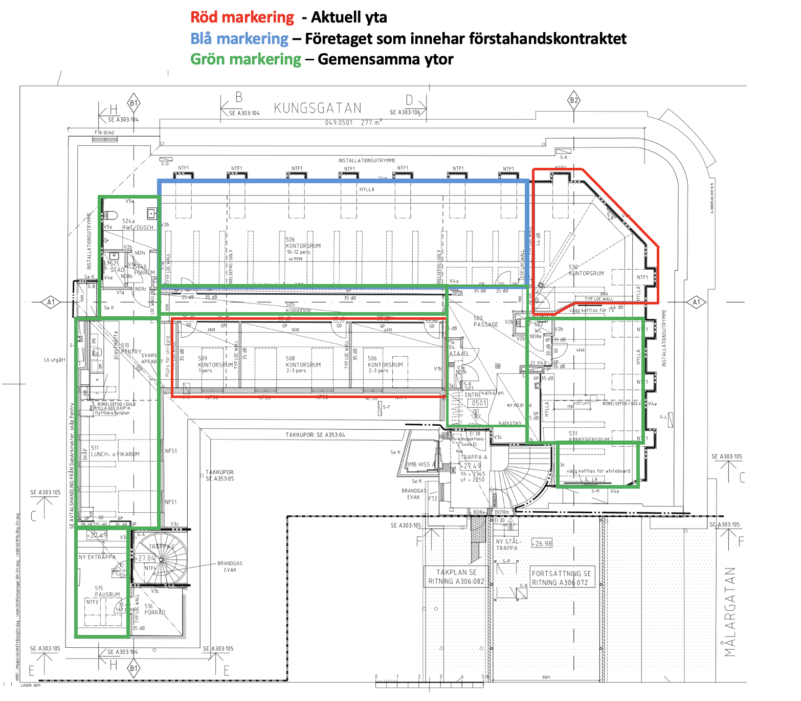 Lokalen delas med annat företag och består av 4 kontorsrum samt gemensamma ytrymmen såsom kök/matplats, mötesrum, samtalsrum, 2 toaletter varav en med dusch.