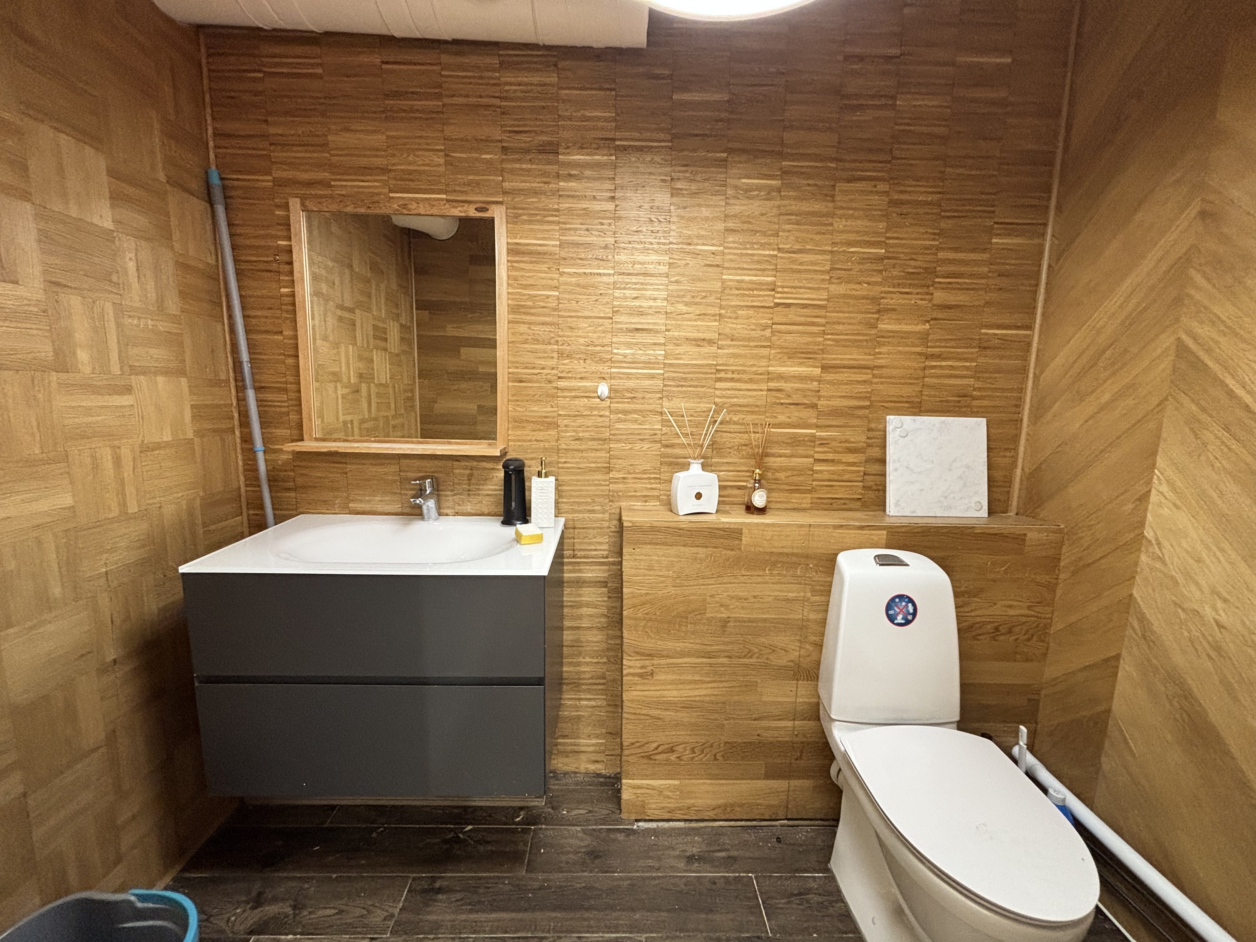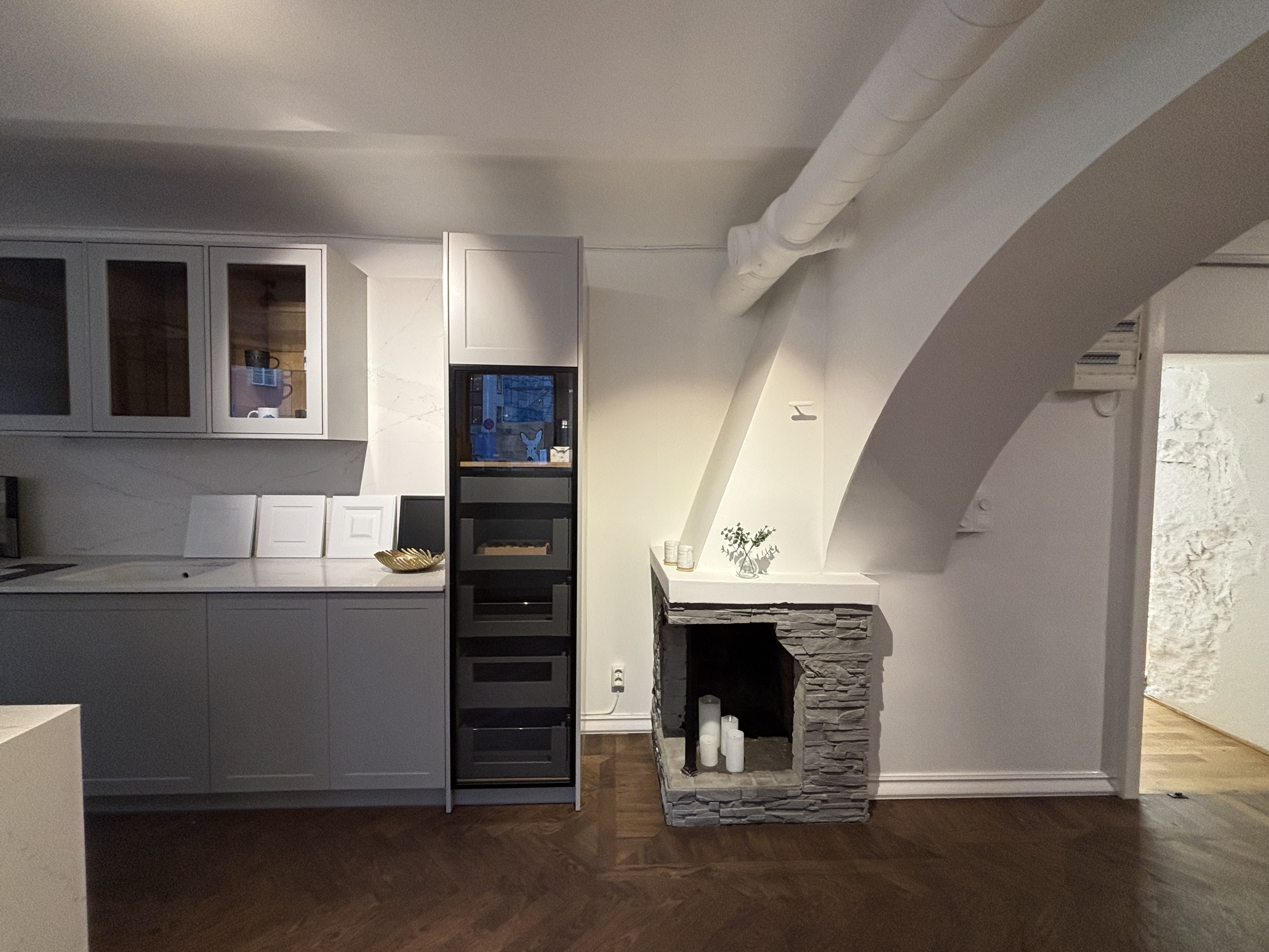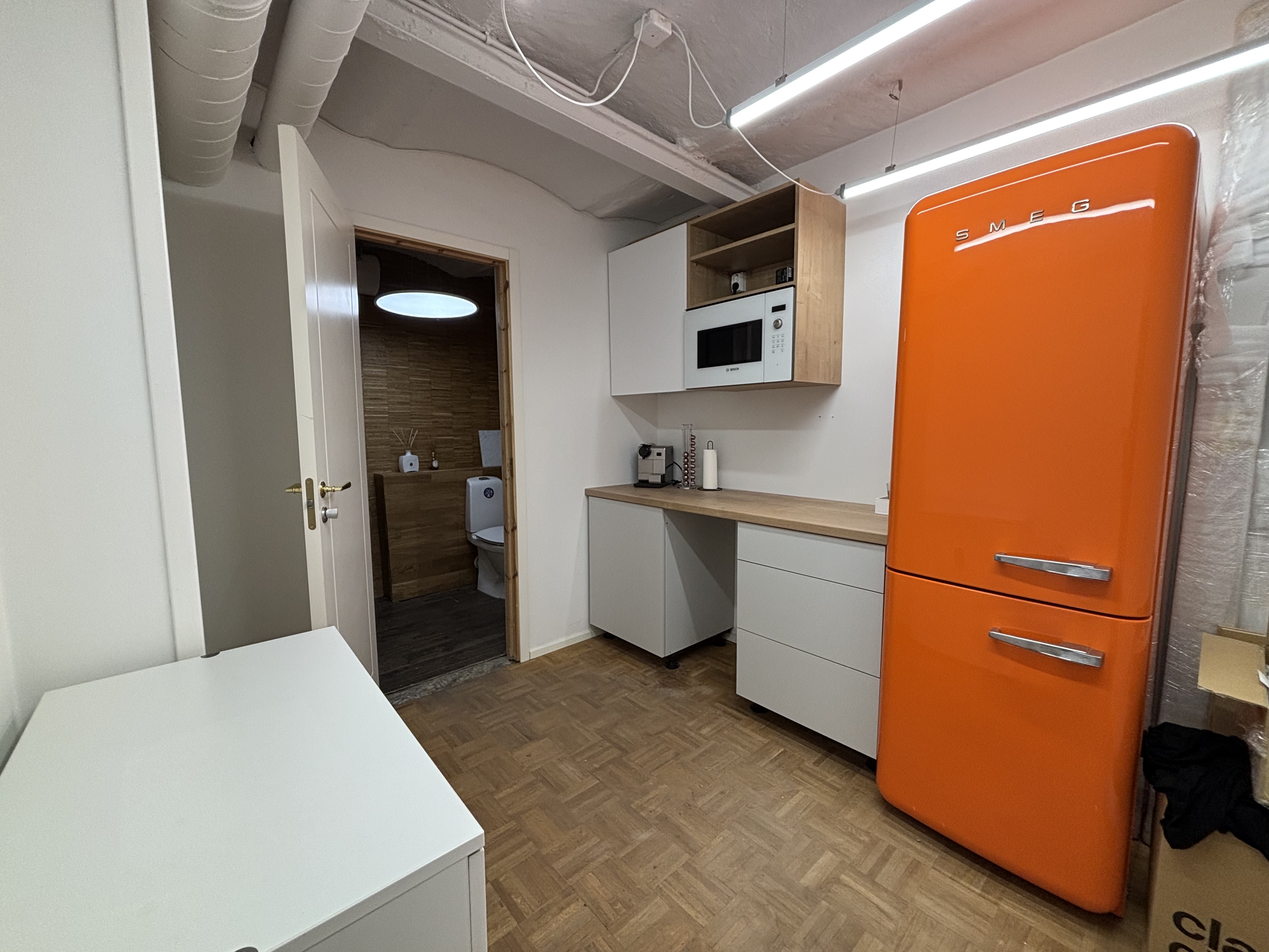 Här möts du av fint trägolv, ljusa väggar och en härlig känsla av rymd. Det rymliga pentryt ger goda möjligheter till pausytor och förvaring. Ett stort plus är den öppna spisen, som skapar en unik atmosfär och gör lokalen extra inbjudande.