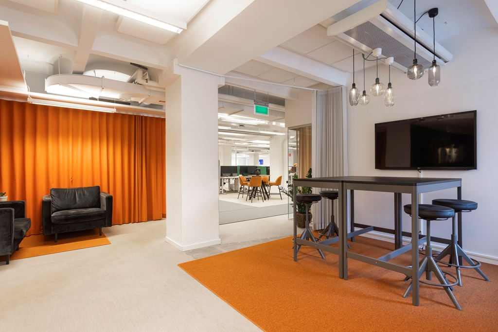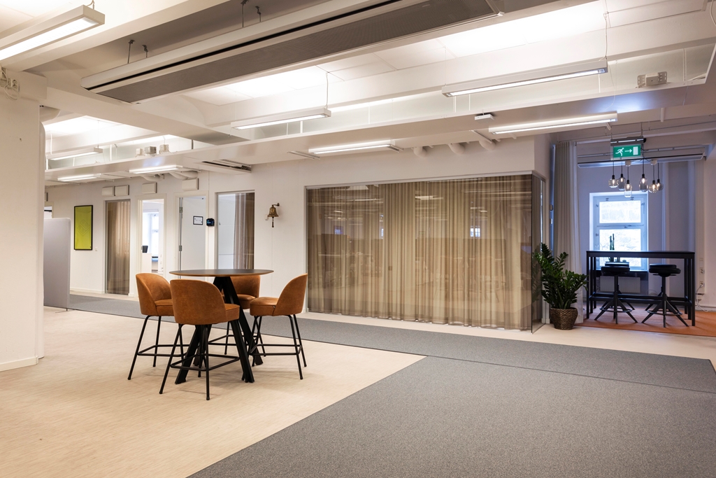 Lokalen erbjuder en flexibel planlösning med en harmonisk mix av öppna ytor, välplanerade konferensrum, projektrum och avskilda samtalsrum perfekt för både kreativa workshops, fokuserat arbete och effektiva möten.