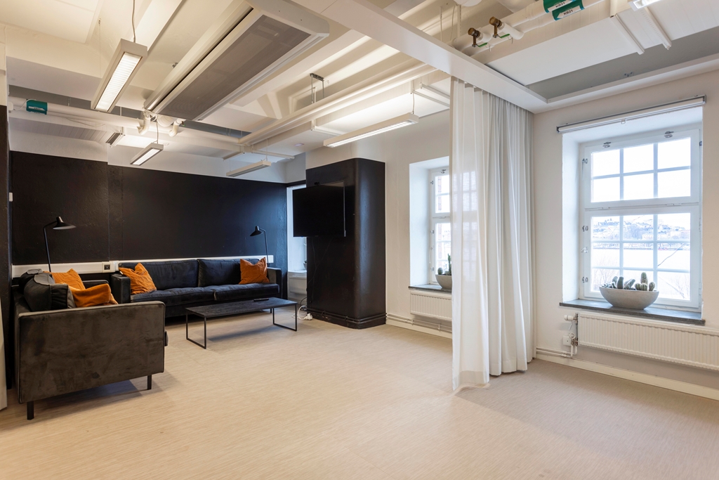 En ljus lokal där sekelskiftets arkitektur möter modern funktionalitet. De vackra tidstypiska detaljerna skapar en genuin atmosfär, samtidigt somfönstren släpper in generöst med dagsljus och bjuder på spektakulär utsikt över vattnet och stadshuset.