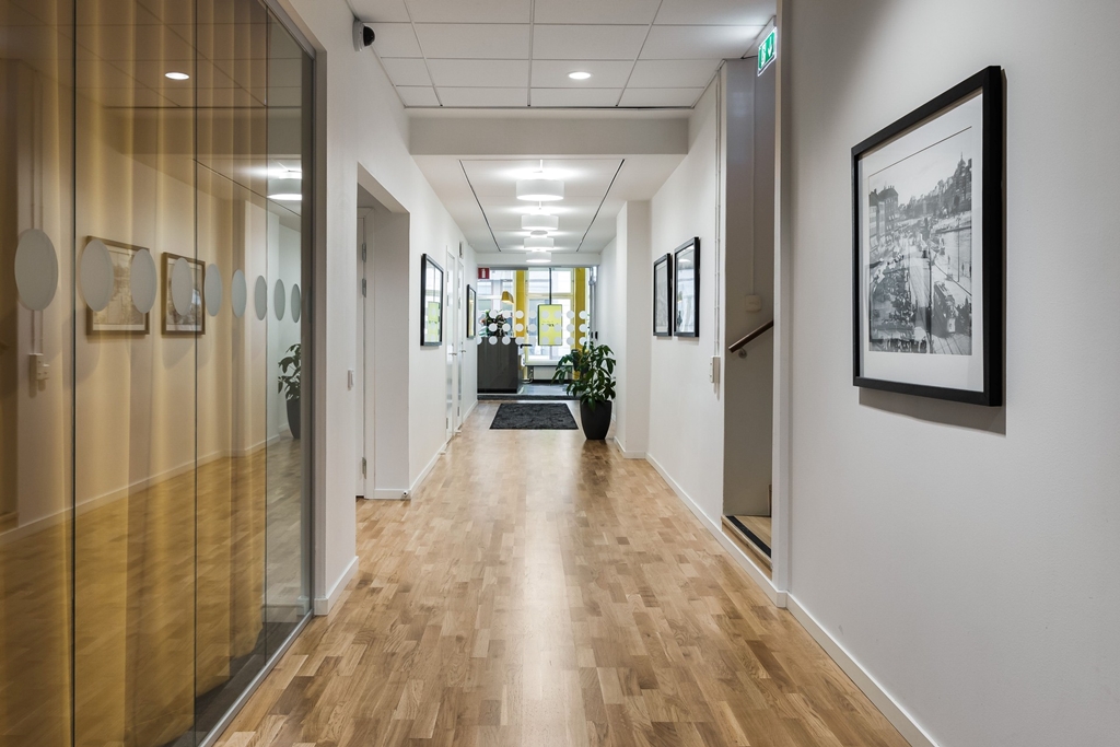 Lokalen erbjuder stilrena ytskikt med en kombination av textilmatta och trägolv som skapar en varm och professionell arbetsmiljö. Den pelarbyggda konstruktionen ger stor flexibilitet i planlösningen och möjlighet att anpassa lokalen efter verksamhetens behov.