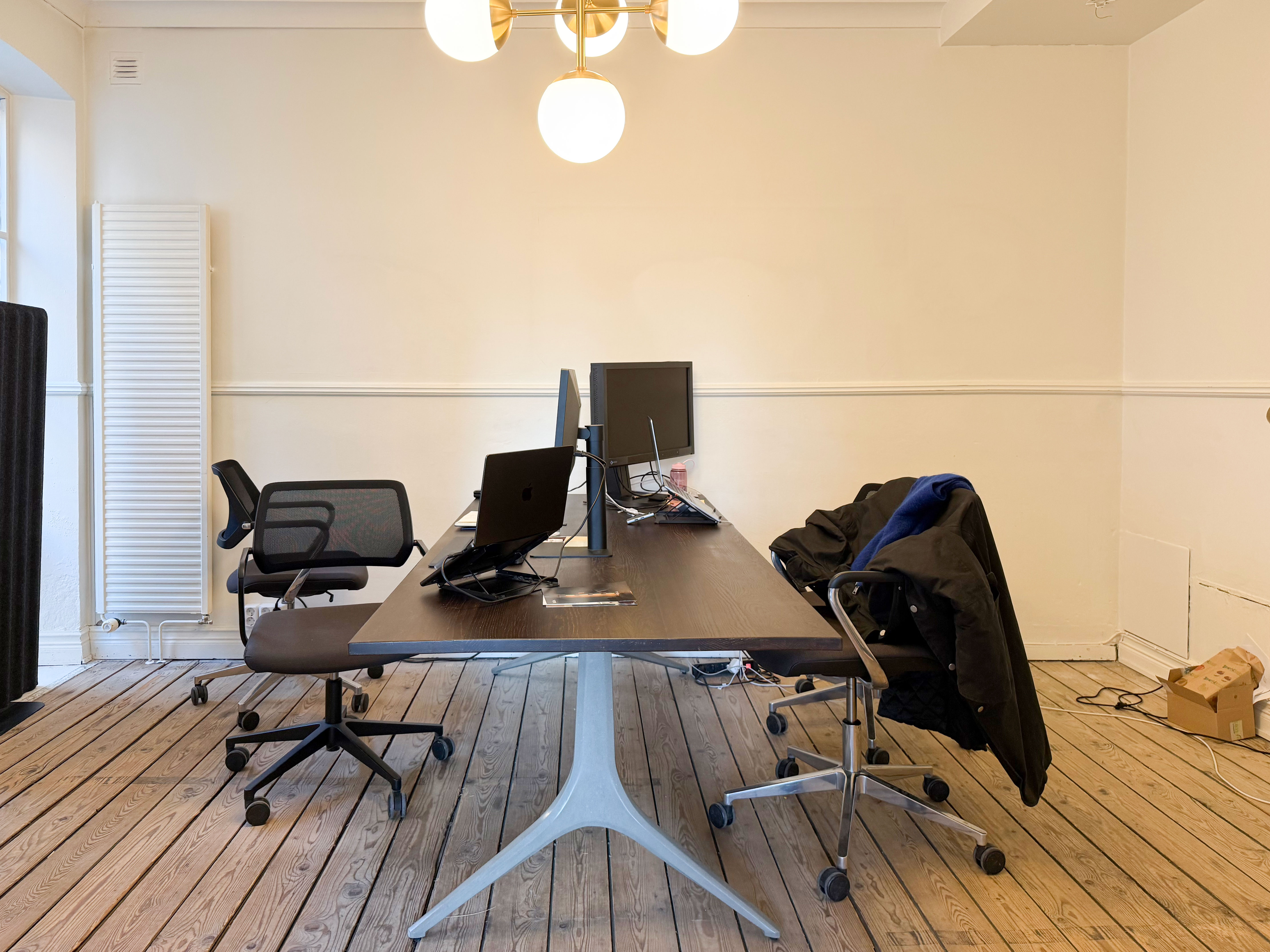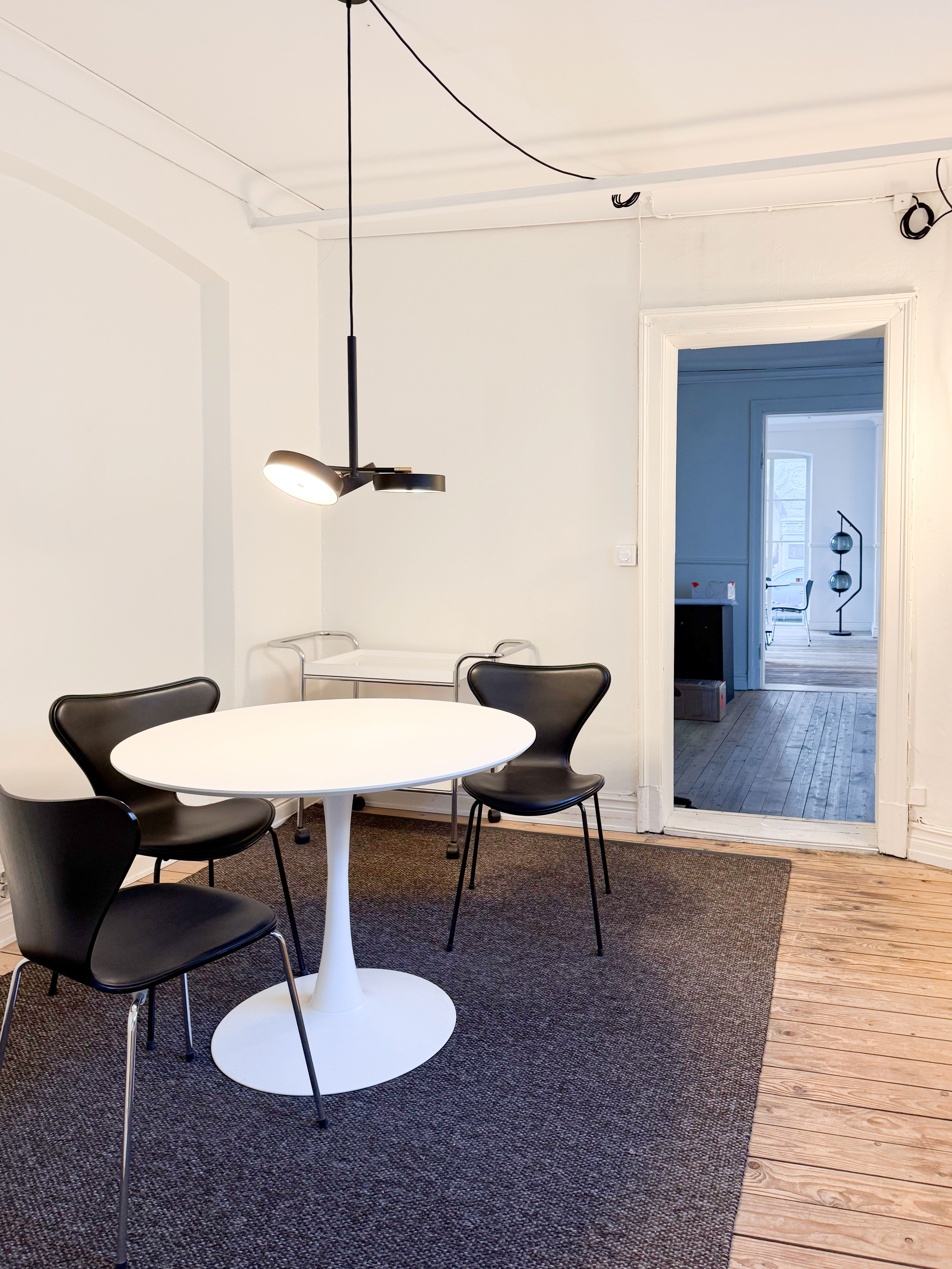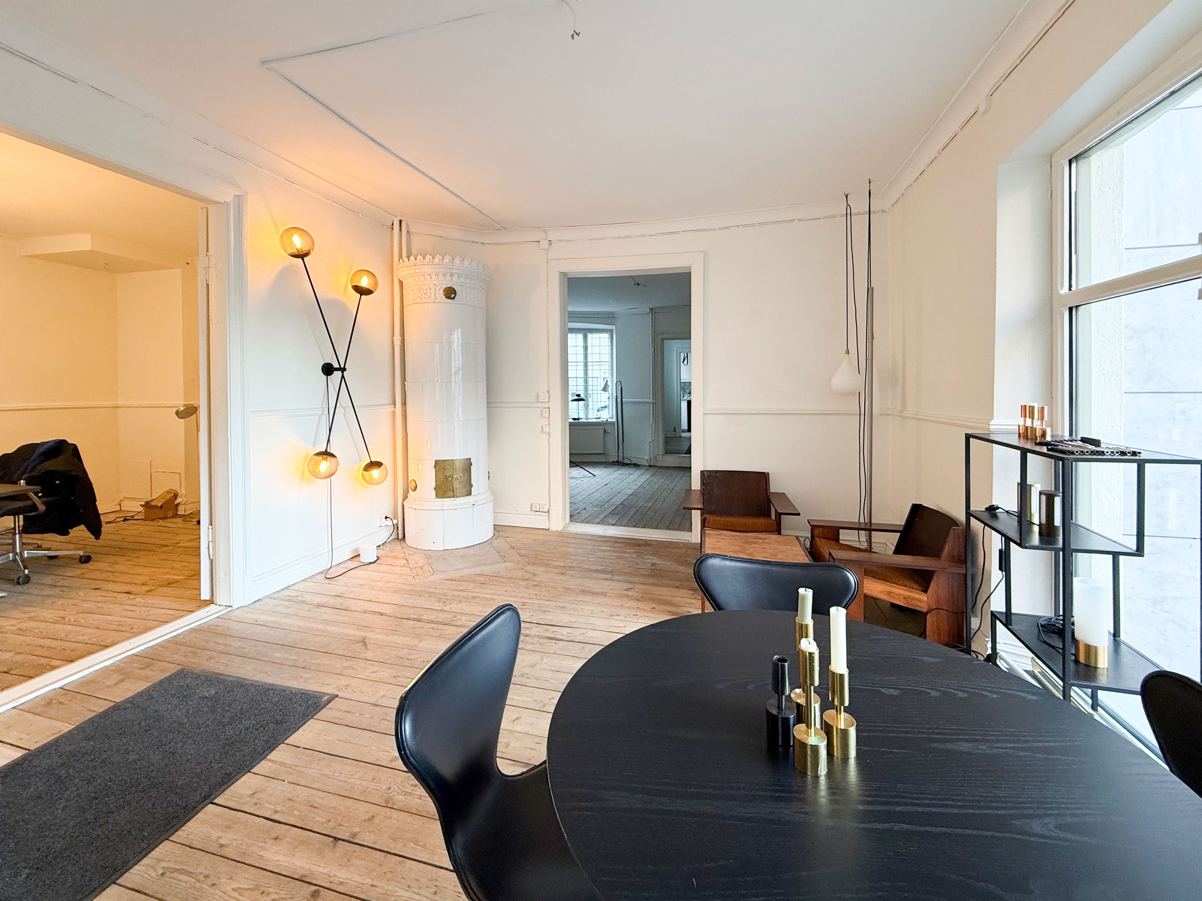 Planlösningen erbjuder en öppen och naturlig rymd med rum i fil, där de innersta rummen får ett behagligt dagsljus från den charmiga innergården. Längst in i lokalen finns praktiska personalytor med både pentry och WC, diskret avskilt från kundytorna.